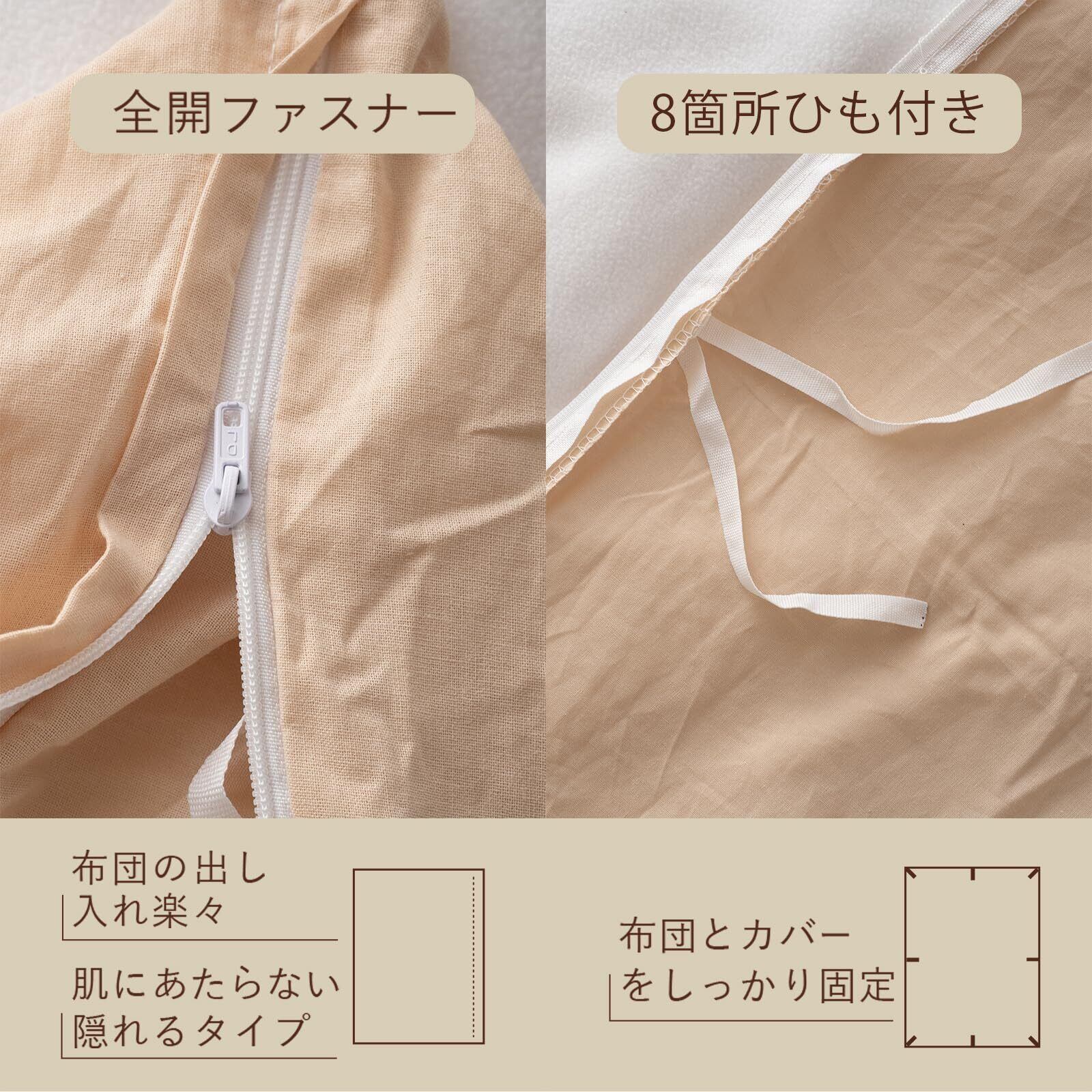 ✨【便利な全開ファスナー】全開ファスナー仕様で、布団の出し入れがスムーズ。8ヶ所の止め具がしっかりカバーを保護し、布団がずれにくいため、深い眠りをサポートします。手軽に着脱できるので、こまめなお手入れも簡単です!
