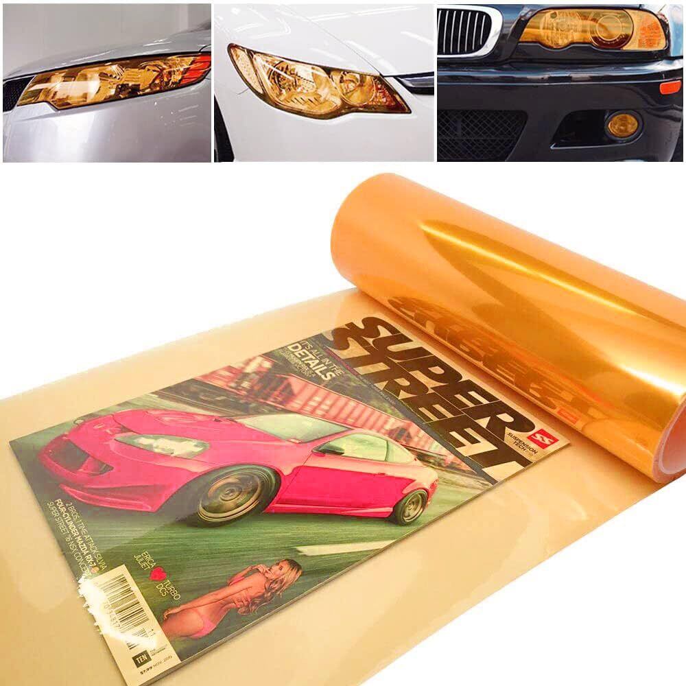 【2022最新】サムコス ヘッドライトフィルム 30x120cm テールランプフィルム カーラッピングフィルム アイラインフィルム 自動車 バイク ヘッドライト テールランプ フォグランプ 適用 ステッカー 紫外線対策 取り付け簡単 (オレンジ)