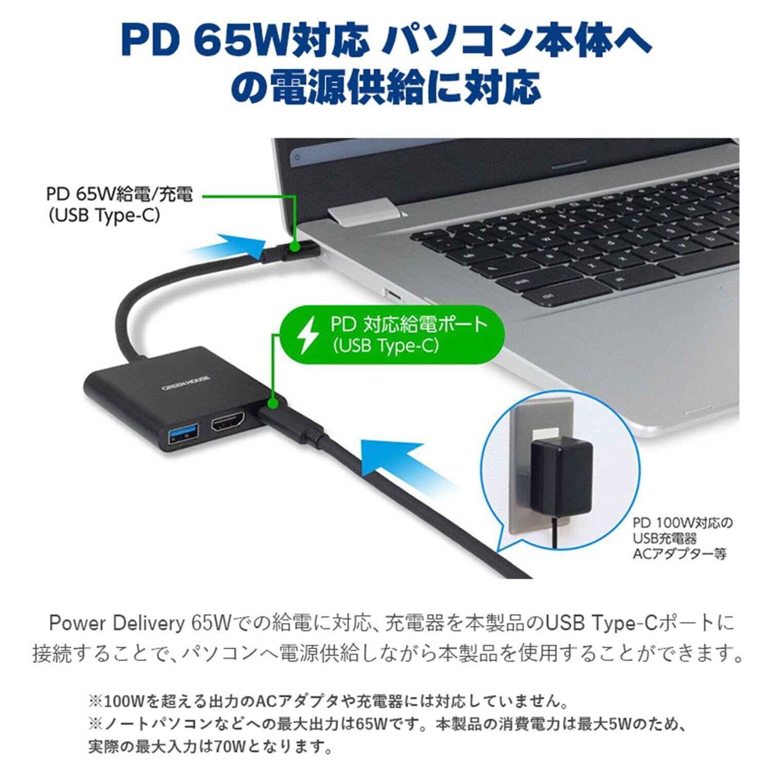 ケーブル1本でUSB機器の接続や映像出力、ノートパソコンの充電ができるドッキングステーション。ノートパソコンのUSB Type-Cポートに接続するだけで、USB機器の接続、4K(30Hz)対応のHDMI出力などの機能が使用できます。