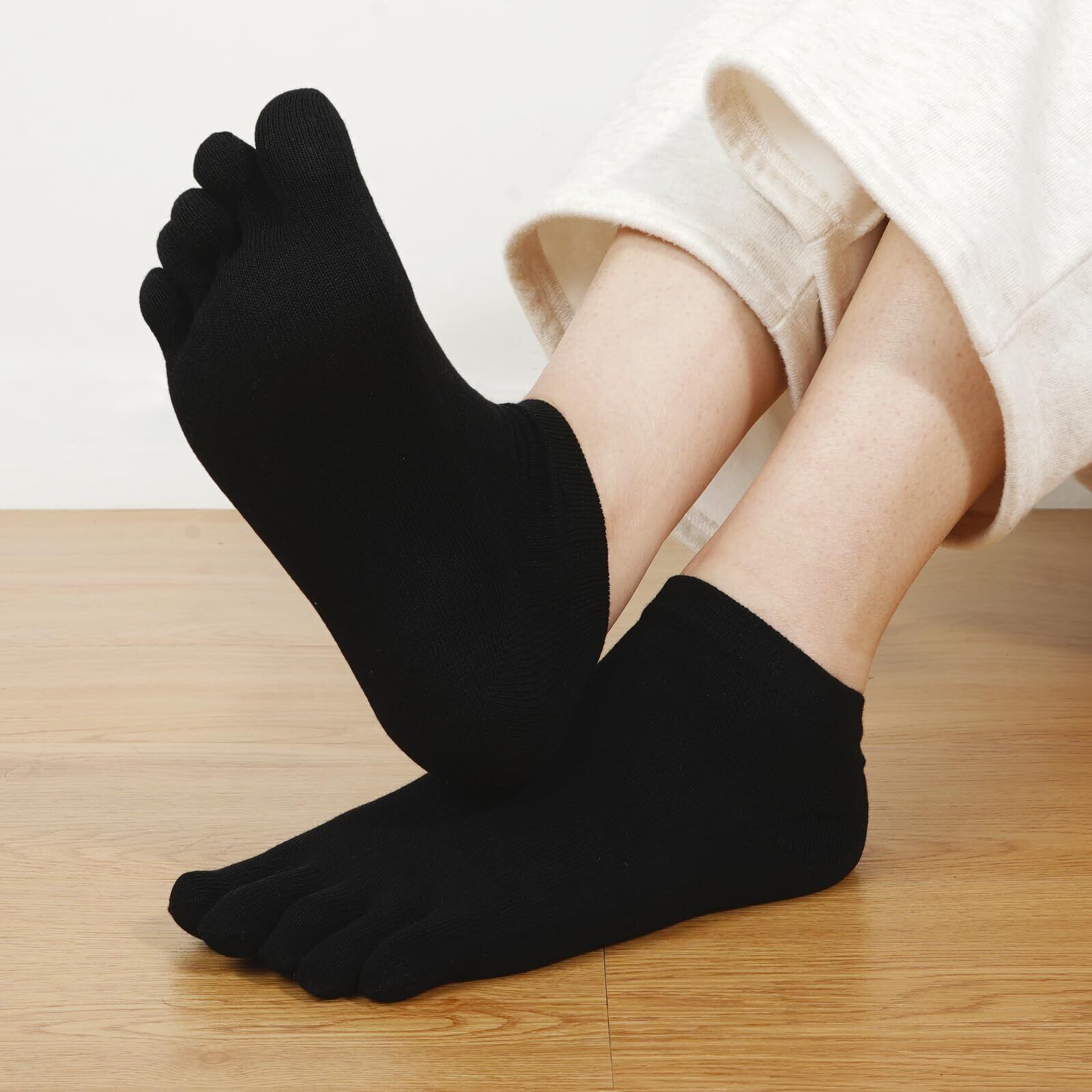 【新着商品】[DAMILY] 5本指ソックス レディース 黒 春夏秋用 くるぶしソックス 通気性 靴下 5本指 スポーツ 蒸れない 五本指くつした 5足セット 無地 通勤通学 22-25cm