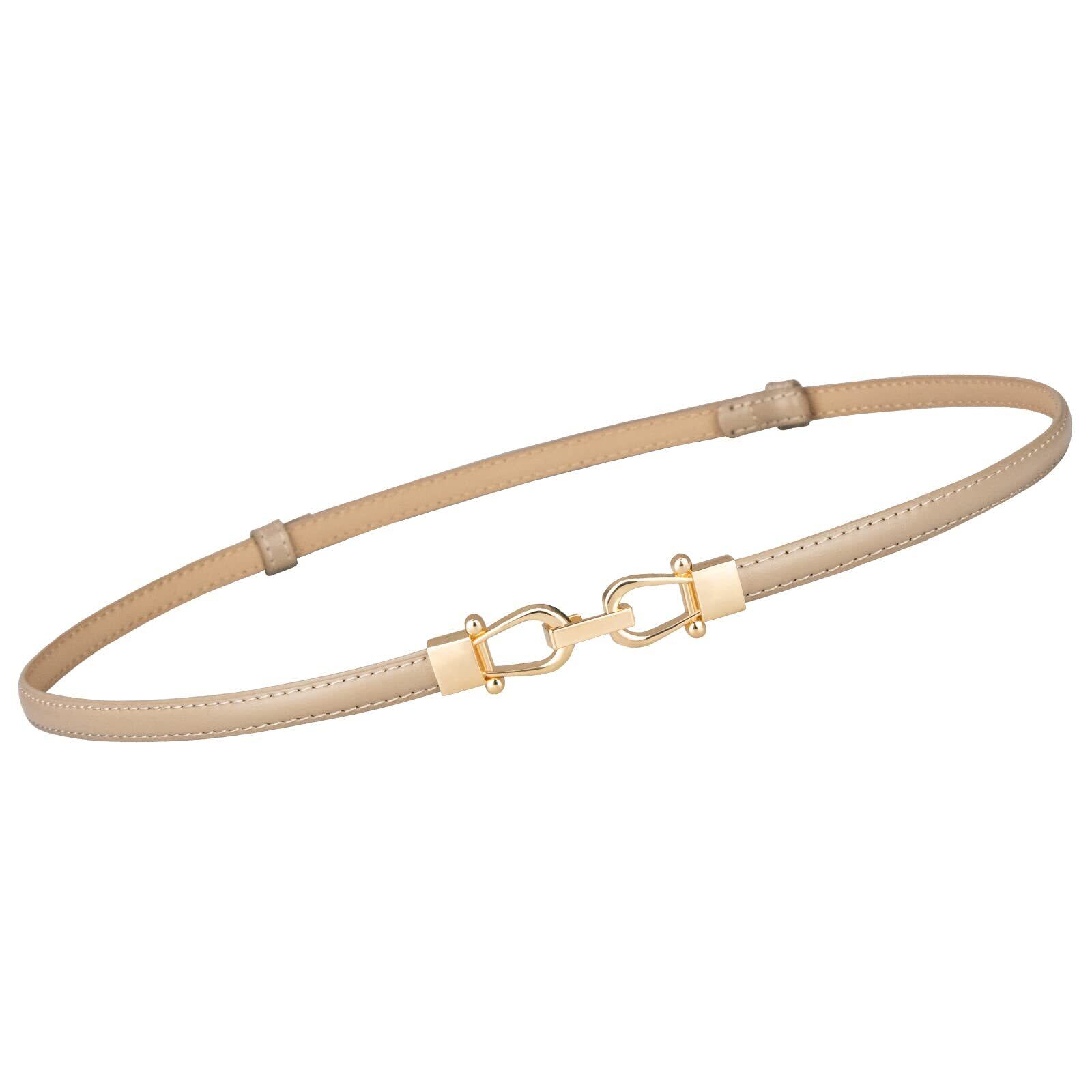 【デザイン】:細いレディースベルトなので、女性らしさを仕上げます。広げる時、金具部分を引っ張ります。締める時、左右の輪っかを動くかします。ゴールドカラーのの光沢のある高級感溢れるバックルを採用しています。価格もお手頃なので、女性らしい柔らかな印象に仕上げます。細身のデザインはがシンプルでかわいいです。飽きがこないから長く愛用できます。
