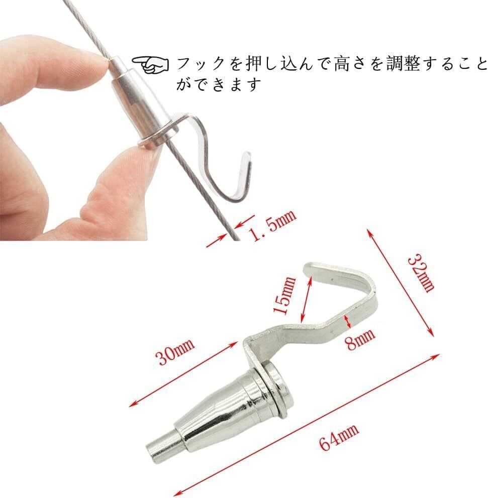 高さ調節:ワイヤーフックの位置は上下に調整できます、掲示物の位置はフックのピンを押し込むだけで、お好みの高さへ無段階調節できます。