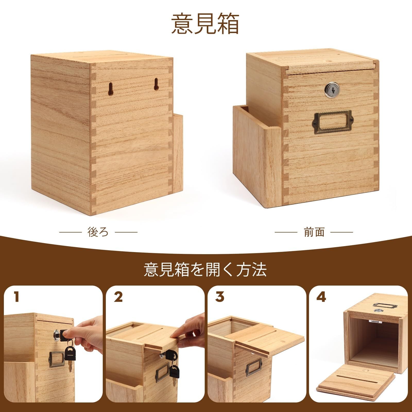 KIRIGEN 意見箱 書類保存箱 鍵付きアンケートボックス 応募箱 募金箱 投書箱 多目的ボックス 壁掛け 軽量 蟻組構造 植物オイル塗装仕上げ ナチュラル TQ-DSYJX-NA
