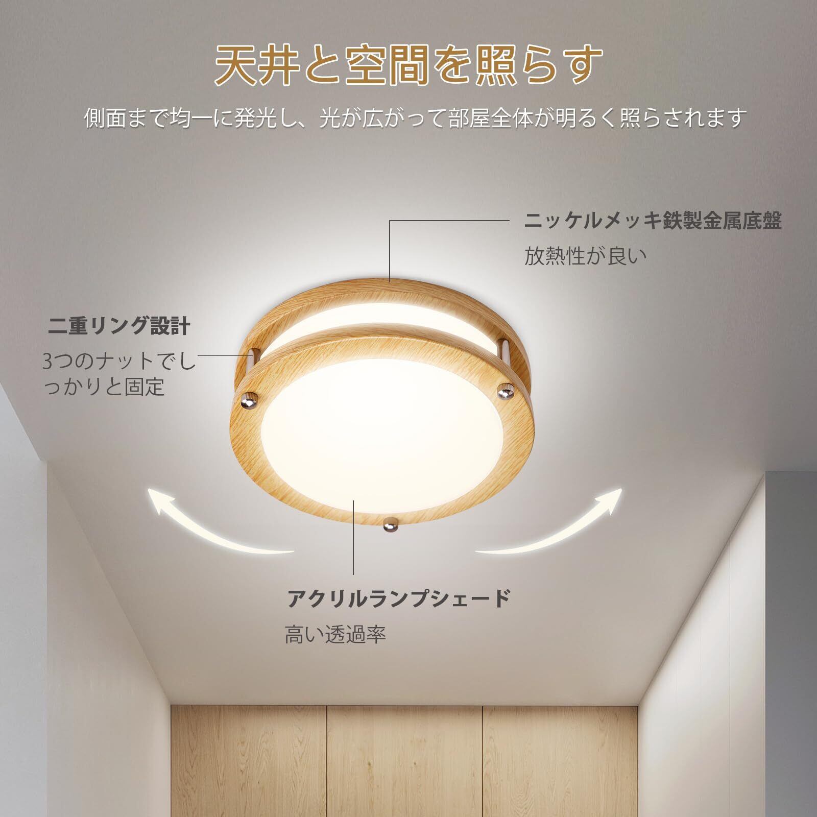 【新着商品】シーリングライト 小型 木目調 昼光色 1300lm 照明器具 天井 LED ワンタッチ取付 コンパクト 天井照明 玄関 廊下 トイレ 洗面所 階段 台所 長寿命 高演色 節電対策 EC2W