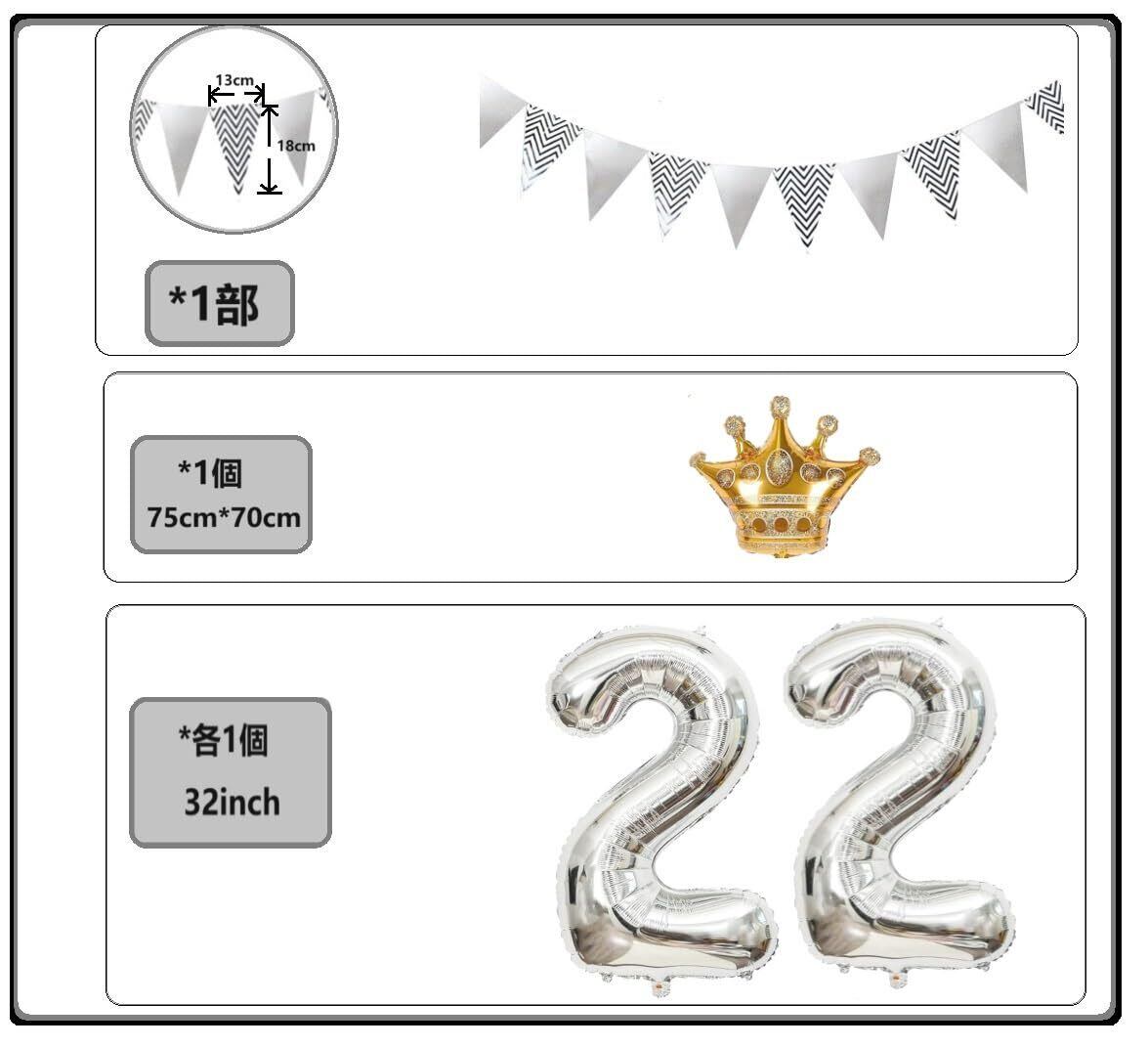 ≪セット内容 ≫ ①ハッピーバースデーバナー×1個②さんかくがたひっぱり旗*1 ③数字風船 *2個④高品質のラテックスバルーンX22個 ⑤コンフィッティ入りバルーン×3⑥王冠のバルーン×1 ⑦ストロー ×1個 ⑧5 m ロープ 1本の針 ⑨展示用両面テープ×1個。