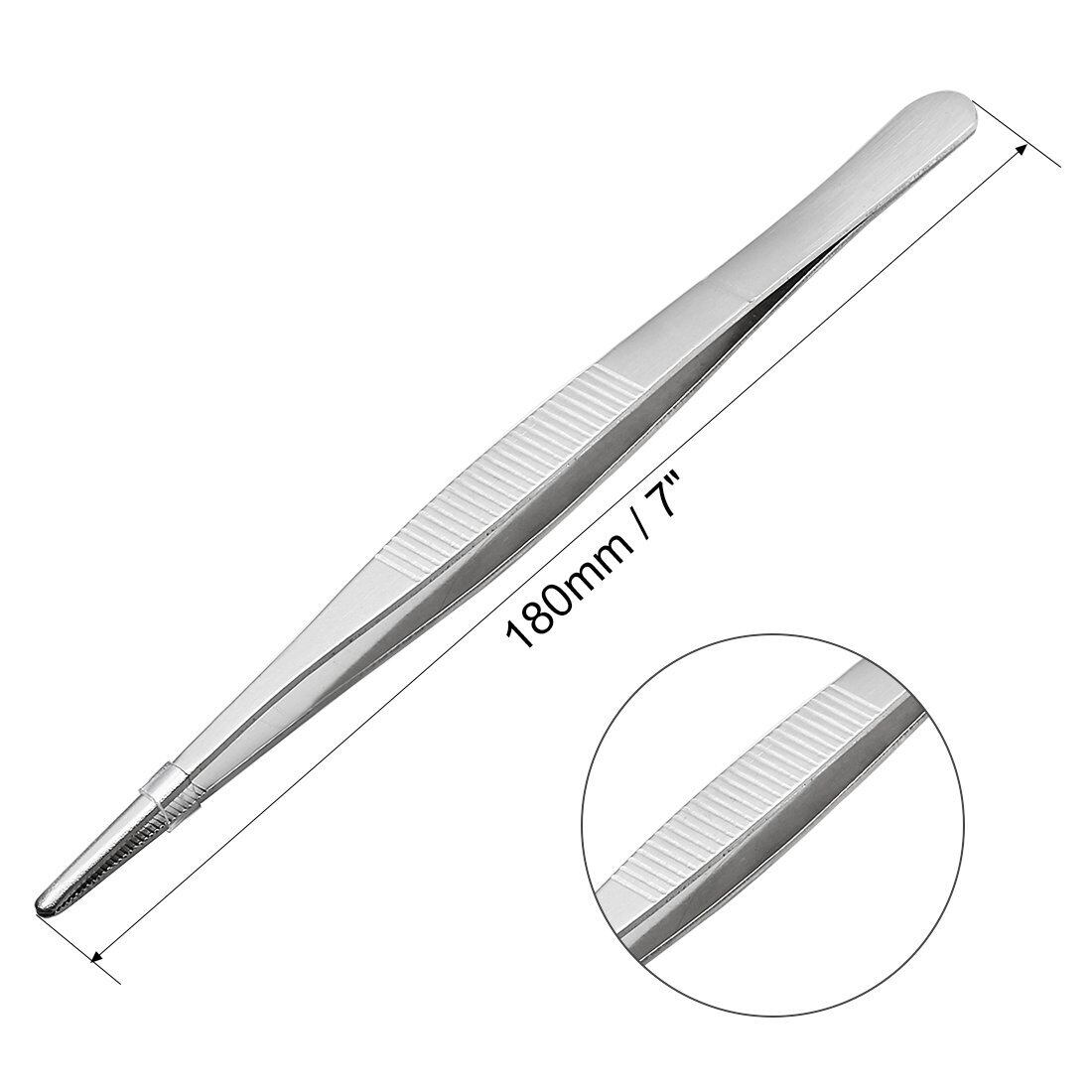uxcell ステンレス鋼ストレート鈍いピンセット 鋸歯状の先端 180mmピンセット長さ 430ステンレス鋼構造