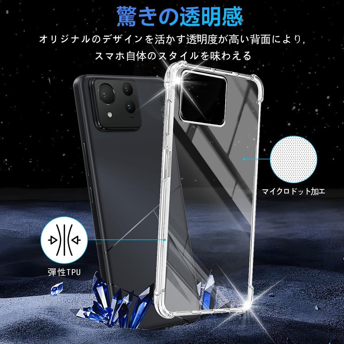 【優れた精度】Asus Zenfone 11 Ultra 5G ケース 薄くて頑丈で、程よいグリップ感があり、できるだけスマートフォン本体のスリムさを極力損なわないように設計した透明背面ケースです。位置、及び全てのスピーカー、ポート、ボタンを精密に設計しており、充電、及びヘッドフォンで音楽を聴いても機能的な使用を妨げなく、携帯電話に負荷をかけなく、簡単に取り付けることができます。【完全透明・上質な透明感】 超精密な光透過分子を備えて、後ろの光透過率は 99% に達します。後ろのポリカーボネートの耐用性と耐摩耗性が抜群です。本来の美しさや高級感を影響しなく、シルクと全く同じ風合いで、涼しい触る感じがあります。誰にでも適用し、夢中になってしまって触りたくなります。