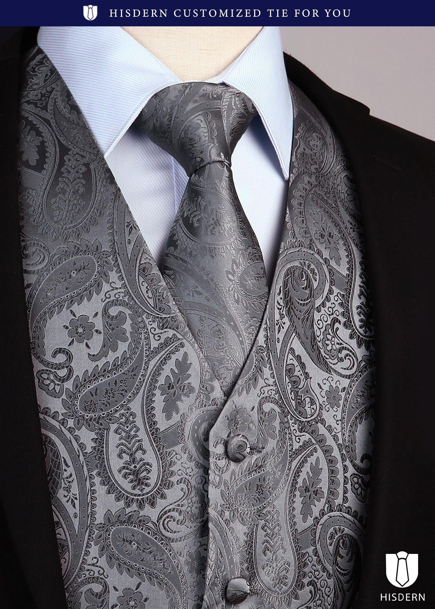 [HISDERN] V3-01 ペイズリー スーツ ベスト メンズ ネクタイ ポケットチーフ 3点 セット フォーマル 結婚式 ベスト 大きいサイズ フィット 2ポケット 紳士 礼服 大きいサイズ