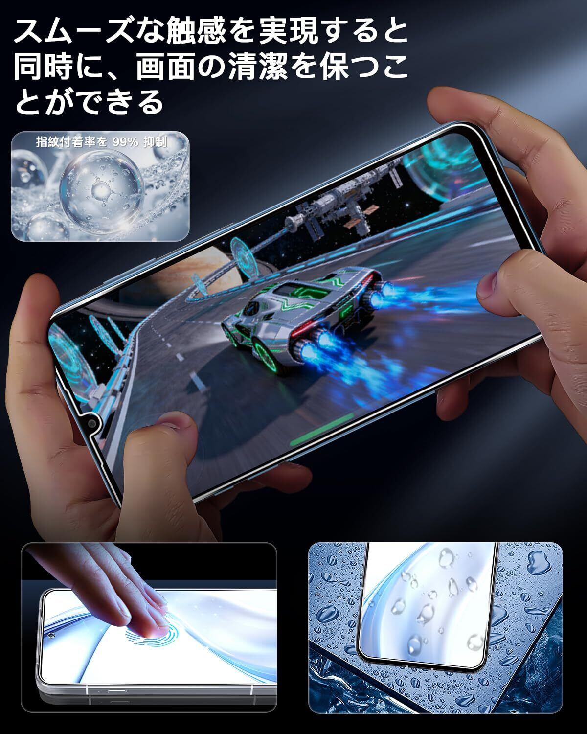 【指紋防止、防油、防水】ガラスフィルムの表面にはナノコーティングが施されており、特殊な疎油処理されているため、画面感度に影響しなくて、簡単にタッチすることができ、指触りが抜群です。汗や指紋がついているときは、軽く拭くだけで新しい状態に回復できます。