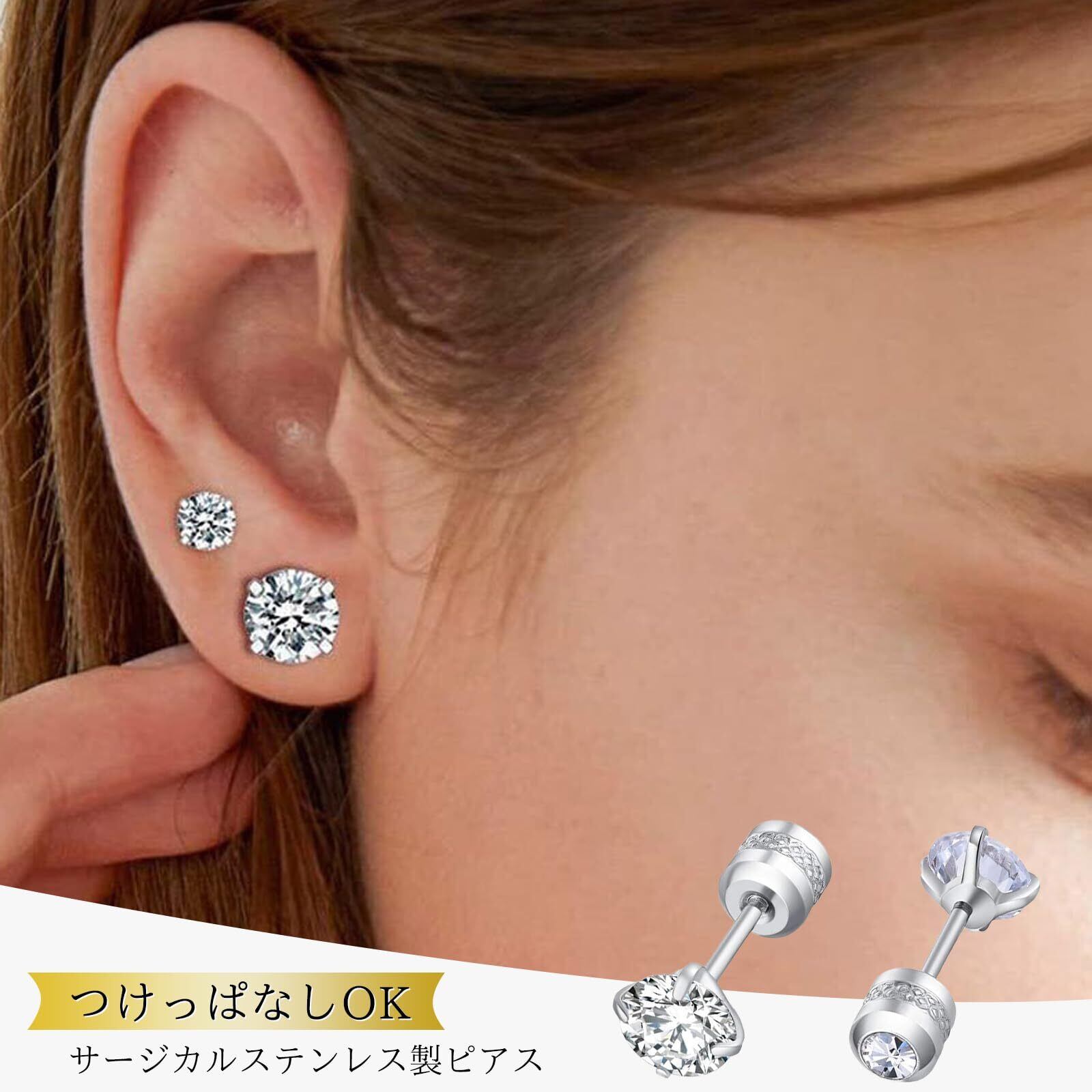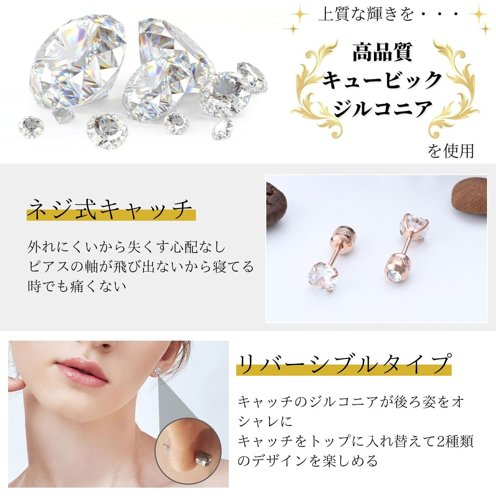 4.2WAYデザイン:シンプルな4本爪スタッドピアスに、高品質なキュービックジルコニアをキャッチにも埋め込んだデザインはトップとキャッチを入れ替えることで便利な2通りの使い方ができます。また耳裏から引っかかりにくいネジ式キャッチ:ネジ式ピアスの特徴は、ポストが外に出ないためも綺麗なジルコニアが見えるので後ろ姿もエレガントに見えます。
