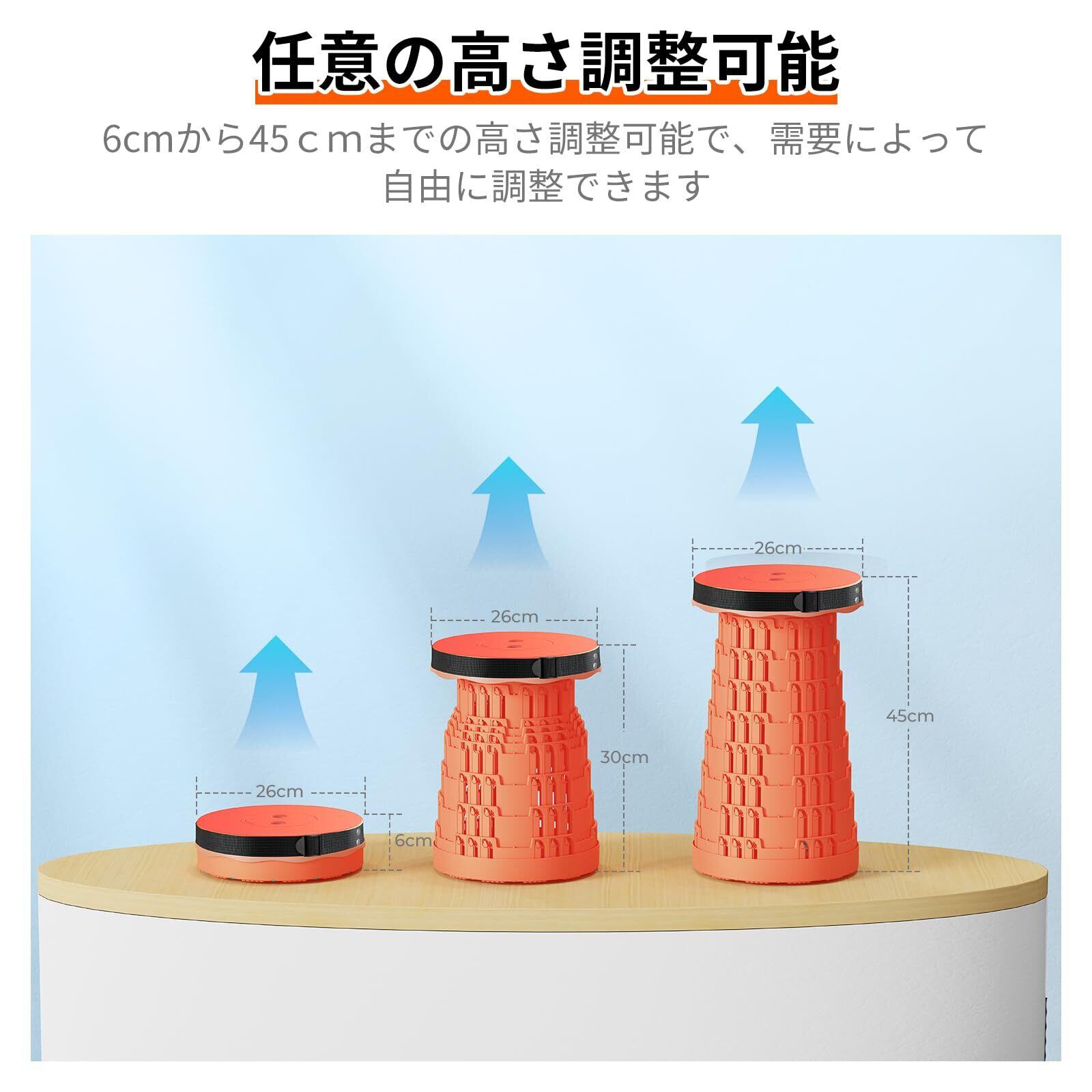 【2022最新】LEEKEY 折りたたみ椅子 7-45cm高さ調節 アウトドアチェア 折り畳み椅子 耐荷重 250kg 超軽量 コンパクト 折りたたみ踏み台 室内 一秒開閉できる 伸縮式 持ち運び便利 防水 アウトドア キャンプ チェア 携帯 スツール 低い 風呂/釣り/フェス/運動会/観戦/屋内/屋外用オ オレンジ