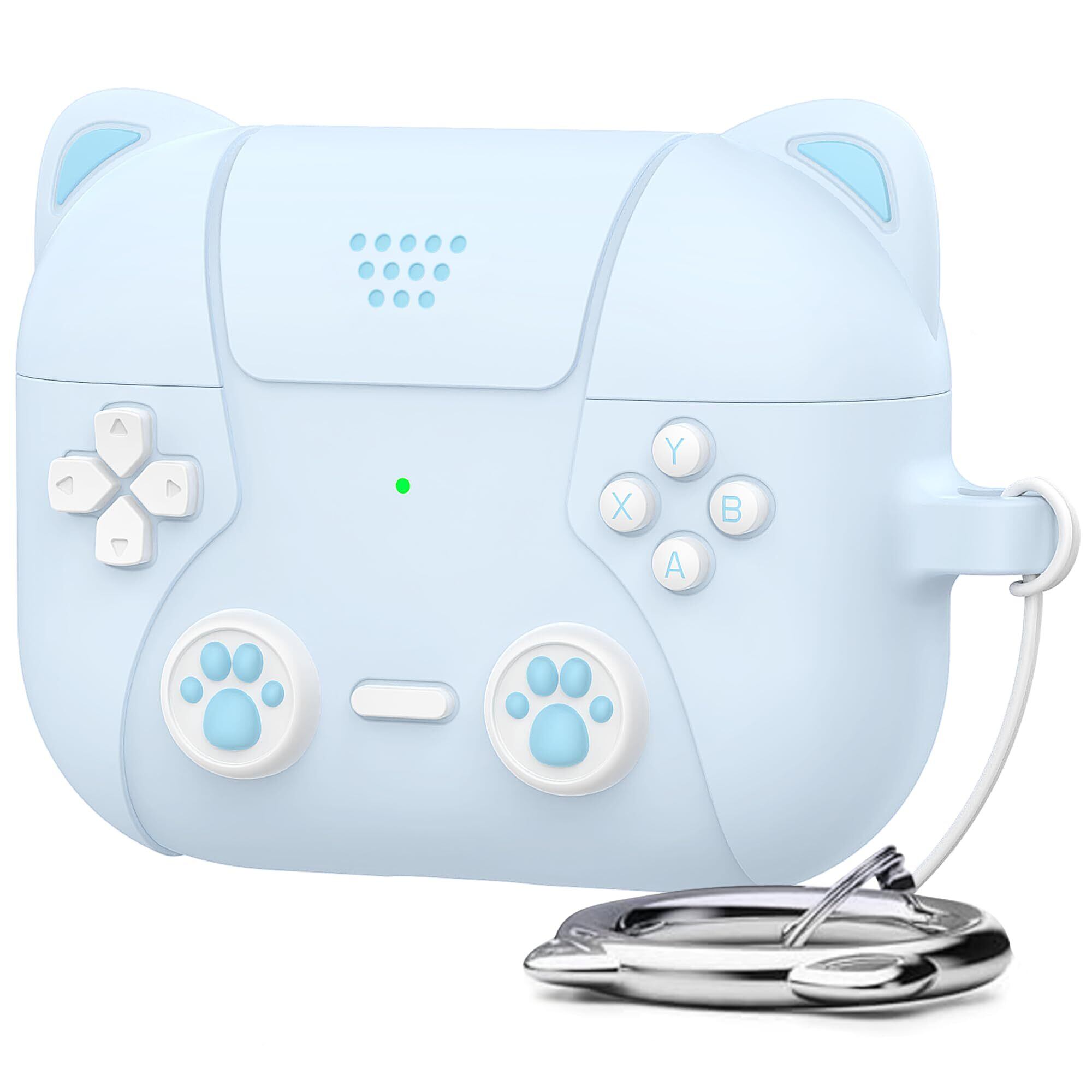 NIUTRENDZ AirPods Pro3 ケース かわいい エアーポッズプロ3 ケース 猫とゲーム機のデザイン (ピンク) (ブルー)