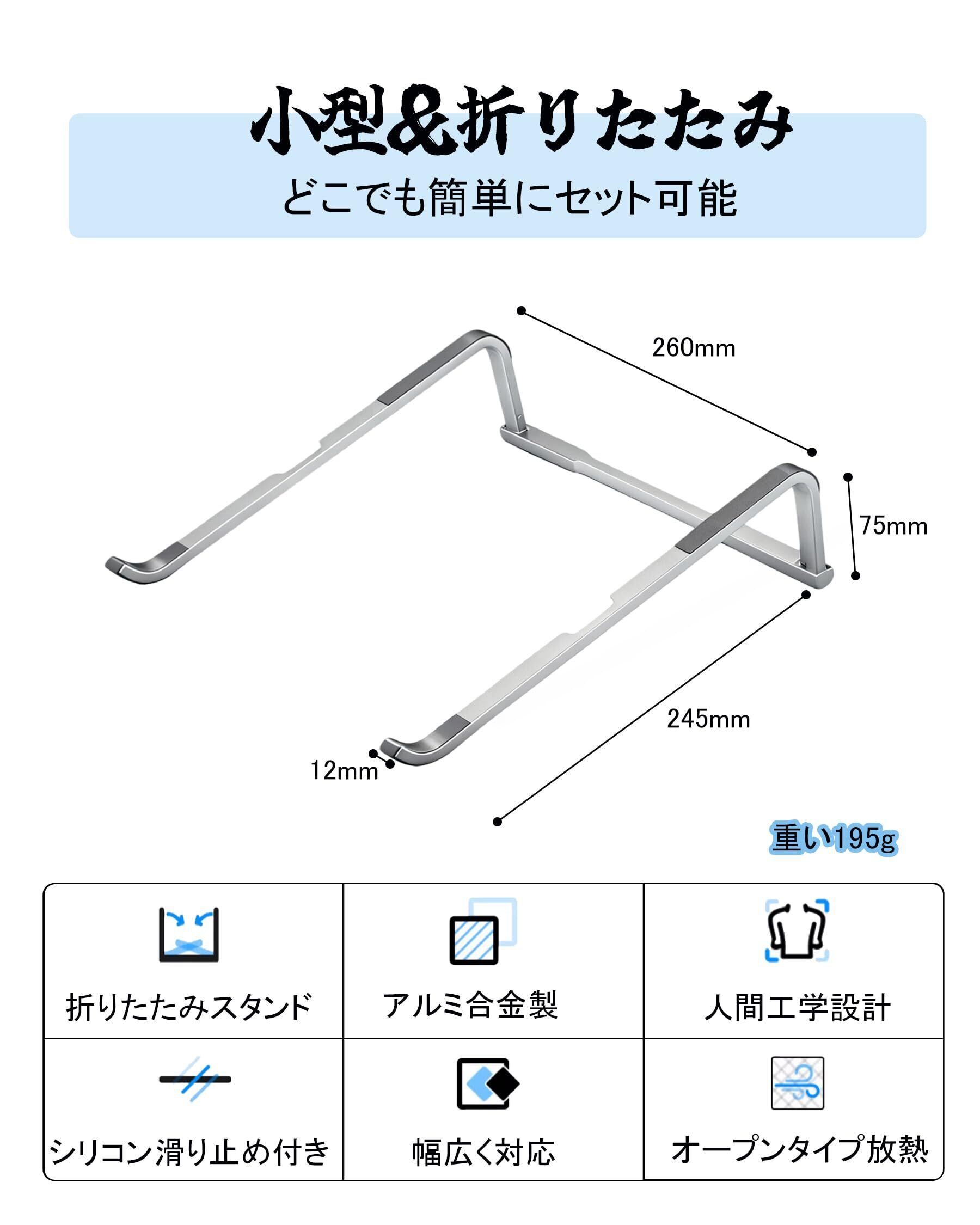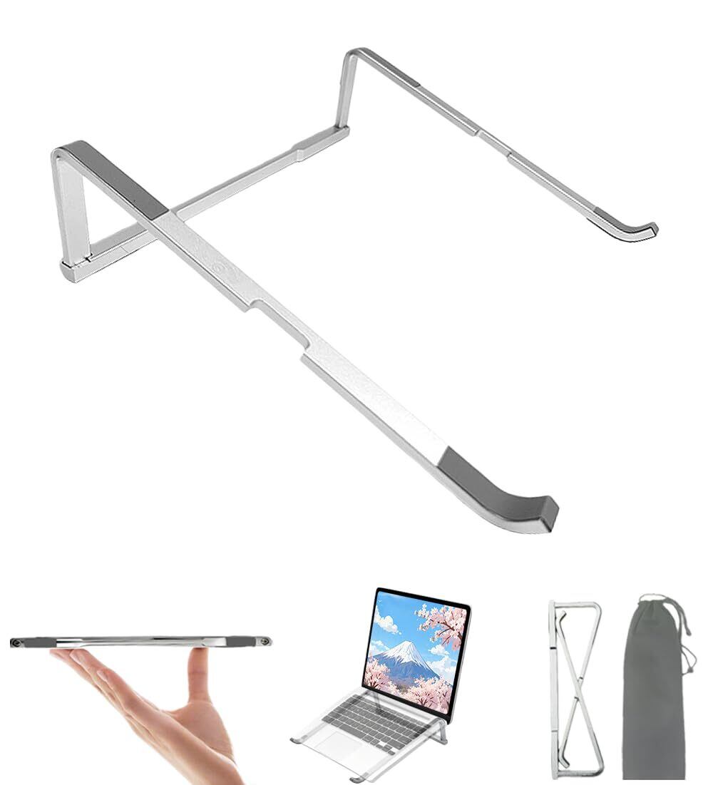 【1秒開閉・超コンパクト】 ノートパソコン スタンド 折りたたみ式 PCスタンド 超軽量195g 安定構造 放熱 iPad/MacBook/ノートPCなど 10〜17インチ対応 携帯便利 オフィス/外出/自宅適応 収納ポーチ付き