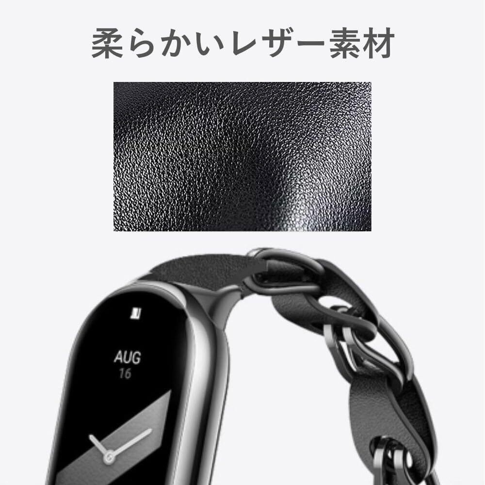 XIHAMA For Xiaomi Smart band 10 / Xiaomi Smart band 9/8 バンド 交換ストラップ 透かし編みデザイン ステンレスリング レザー チェーンベルト Miband 8/9ベルト 通気 レディース用 エレガント 交換バンド