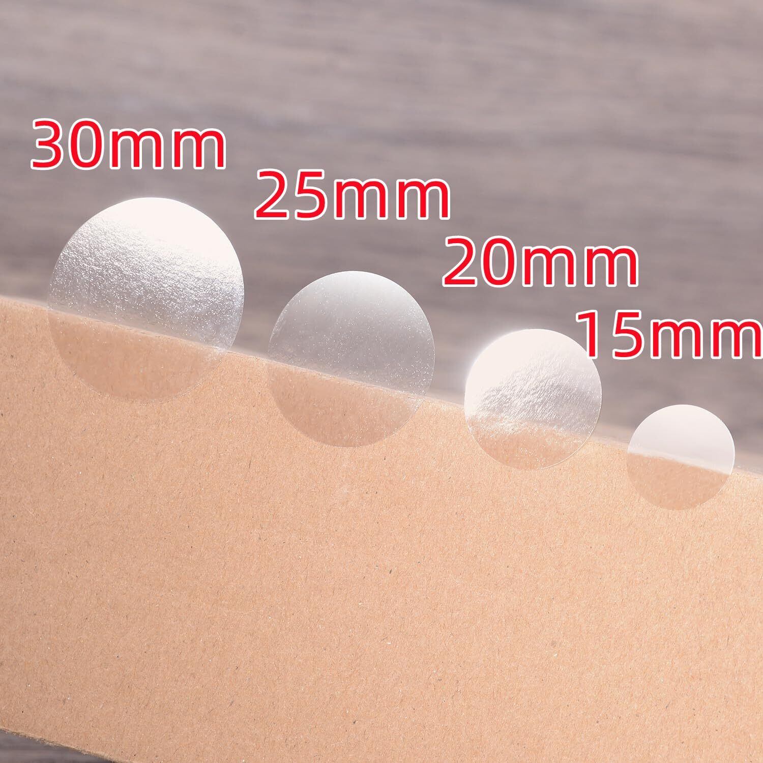 【未開封シール - サイズ】小さな15mmチから大きな30mmまでのサイズに対応した未開封シールをご用意しておりますので、お好みのサイズをご選択いただけます。