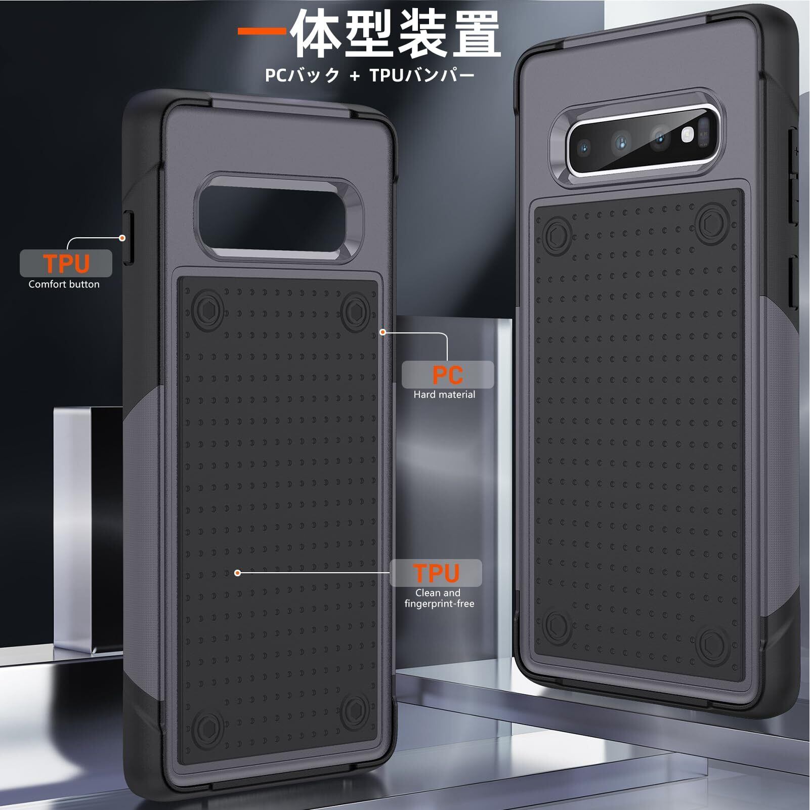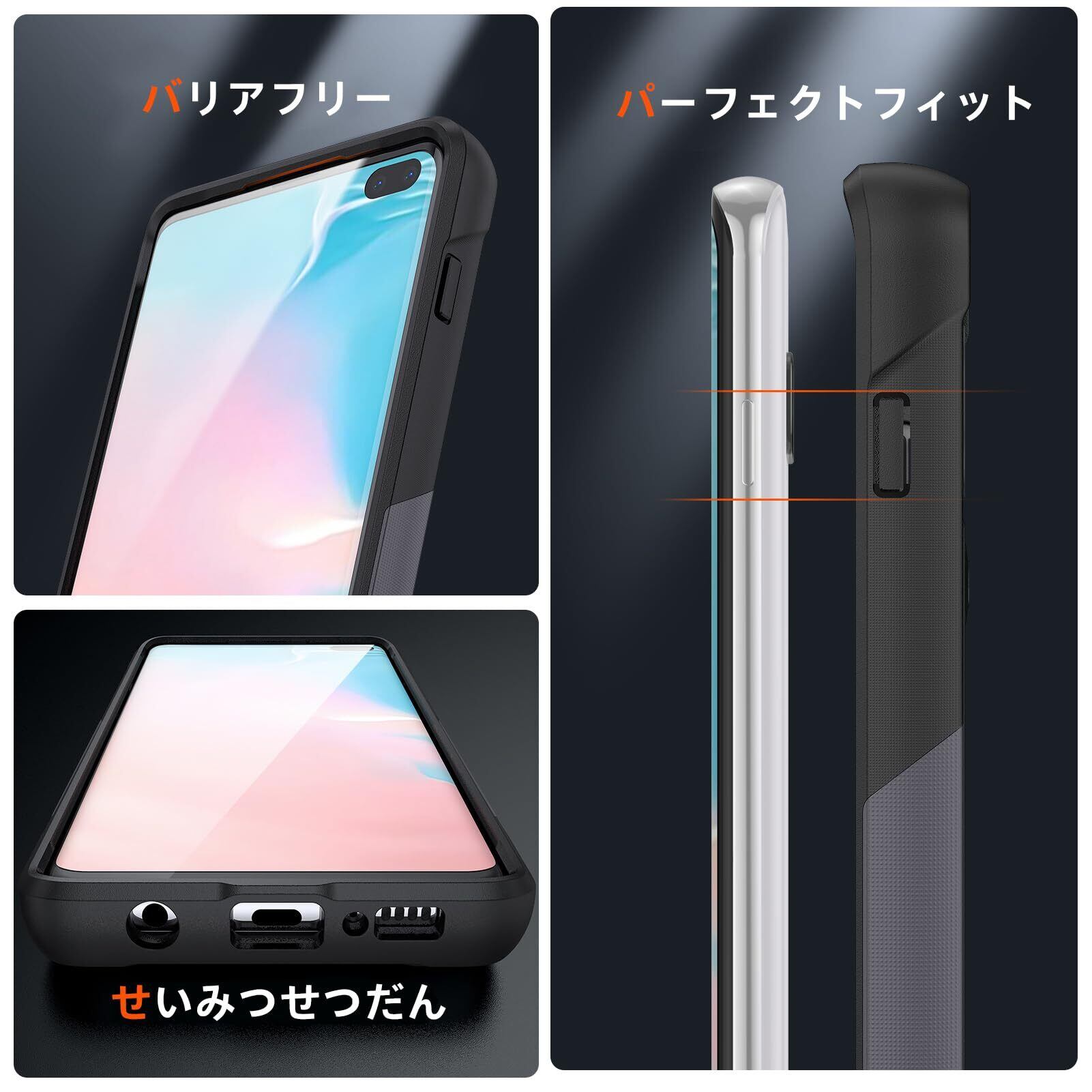 【新春セール】Galaxy S10 ケース 黄ばみなし 耐黄変 Galaxy S10 カバー 耐衝撃 米軍MIL規格取得 レンズ保護 落下防止 滑り止め TPU+PC スマホケース おしゃれ 耐磨 グレー/黒 0111-AS10-04