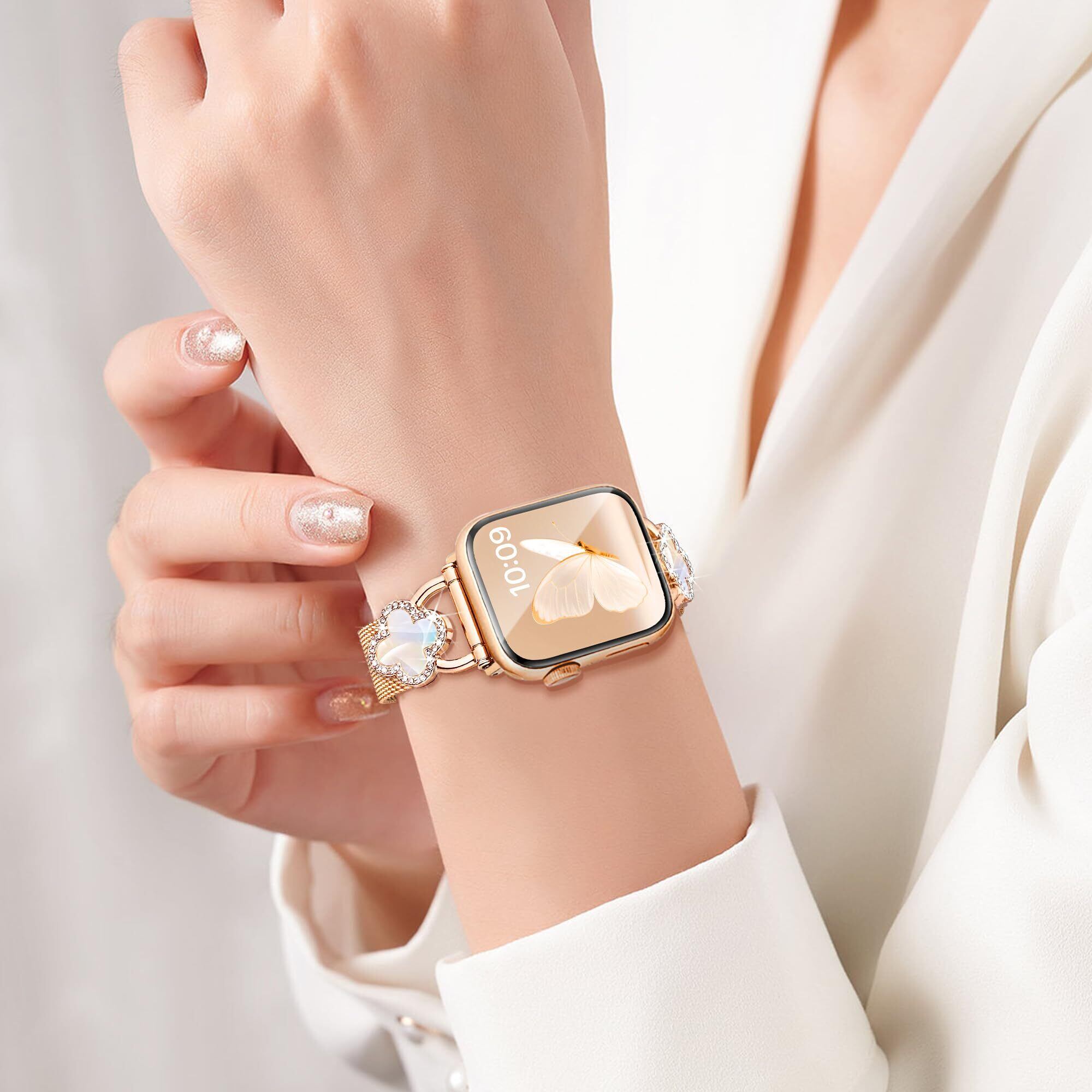 ✨【華やかさを引き立てるキラキラマグネットベルト!】「[Bokoios] キラキラマグネットベルト」は、アップルウォッチを一層スタイリッシュに演出するためのアイテムです。四つ葉のクローバーデザインが、女性らしさを引き立て、特別な日や日常のコーディネートにぴったりです!