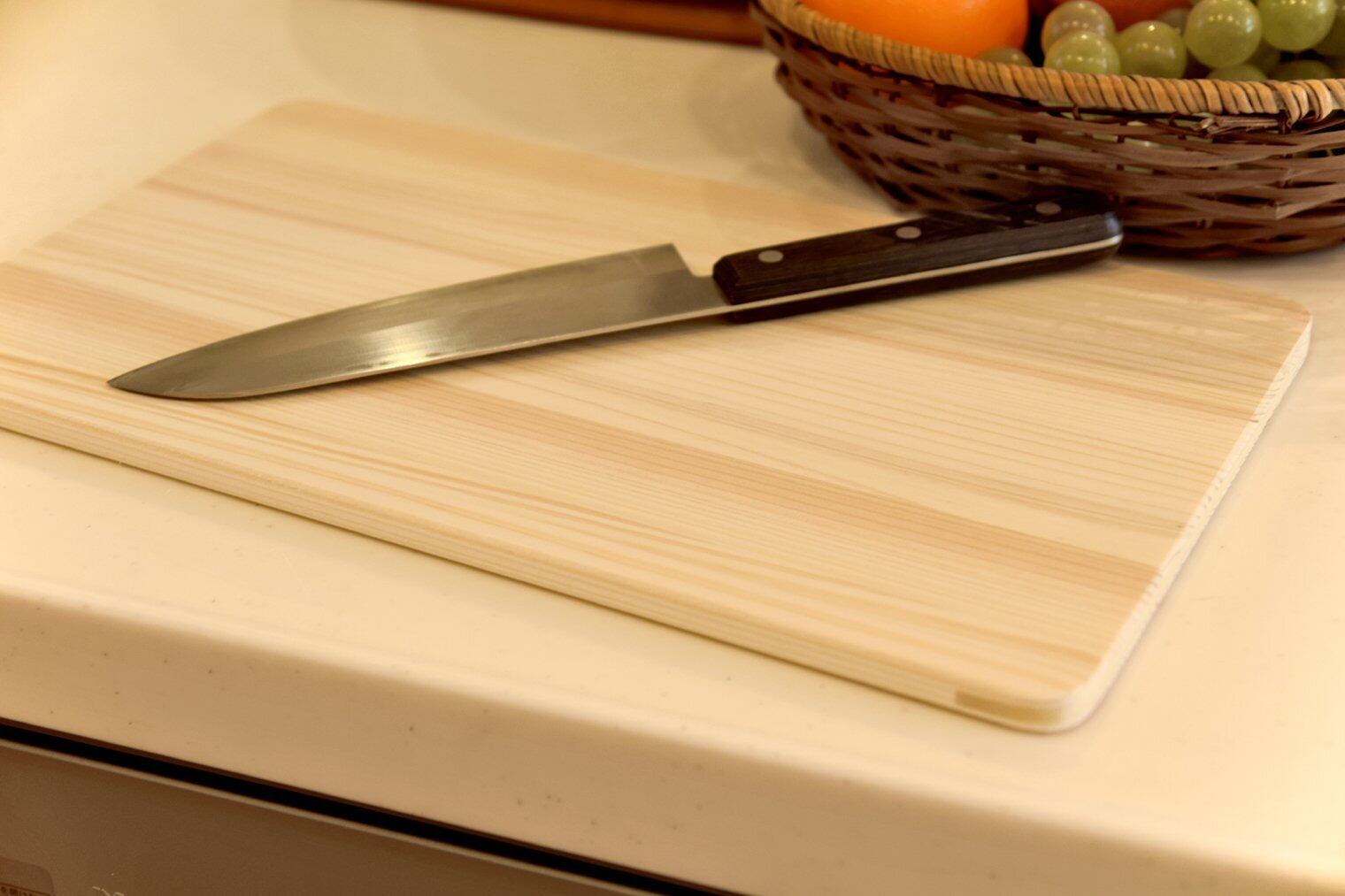 ひのき特有の美しさ、芳香・温かさ、刃当たりはそのままに、軽く使いやすく仕立てられたまな板。