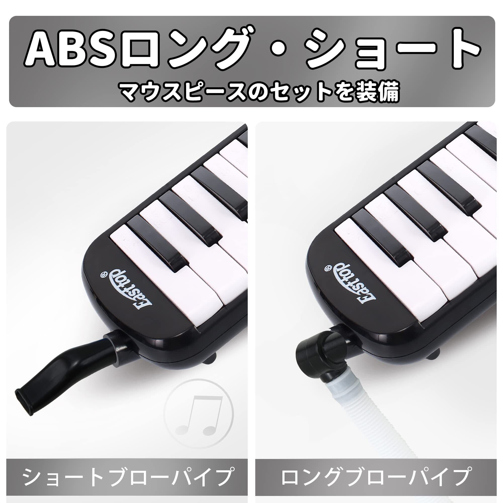 【特価セール】East top 鍵盤ハーモニカ 32鍵 小学生 ピアニカ こども用 軽量 メロディピアノ ふき口 ホース 卓奏 立奏 ケース 付き(Black)