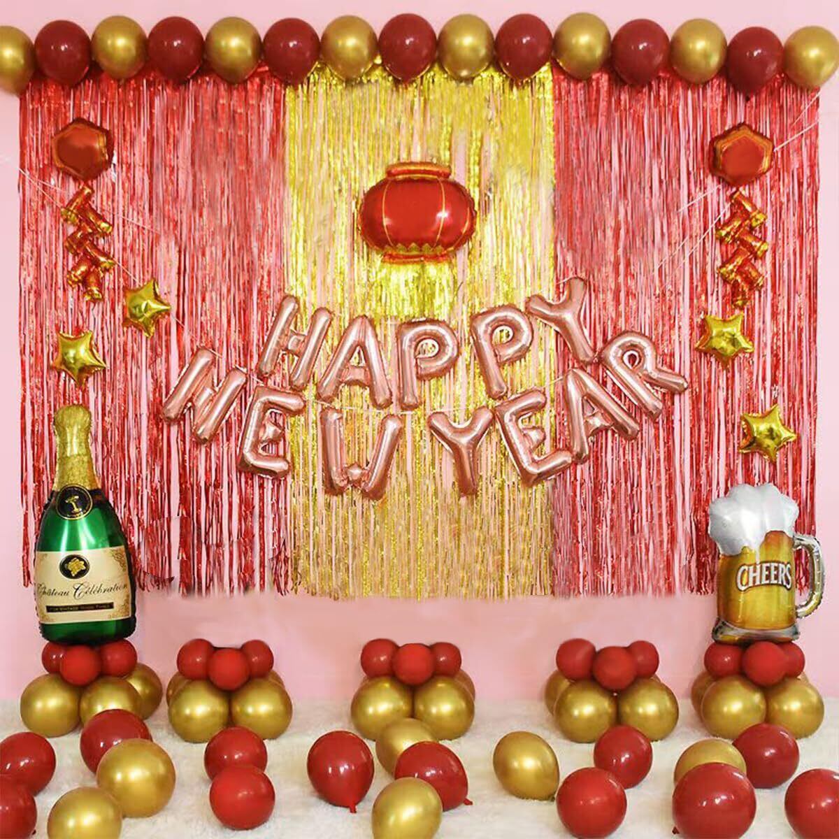 【製品仕様】: 100cm(幅)×200cm(高さ)2枚セット 十分な長さで、さまざまなイベントに適しています。必要に応じて長さを自由にカットすることもできます。カラー:ゴールド