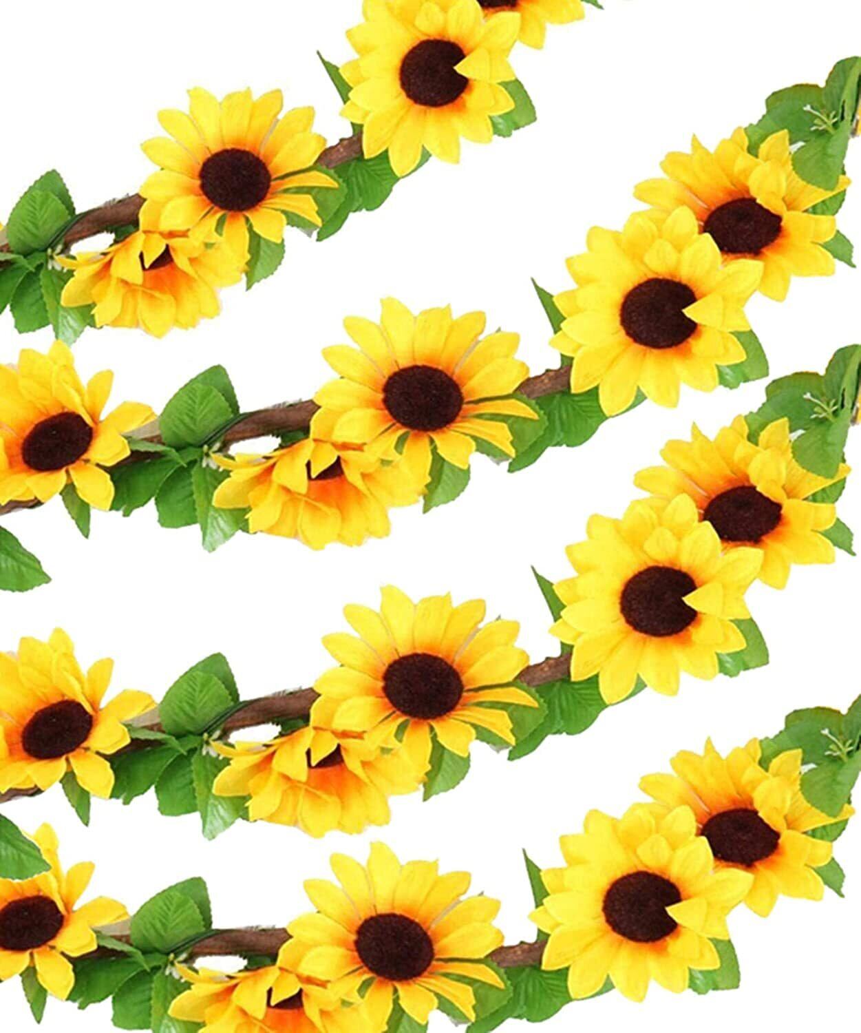 4パック造花の藤 ひまわり 壁飾り花 枯れない花 ガーランド 向日葵 インテリア飾り 壁掛け 人工花 人工観葉植物 家庭やパーティーの装飾のための花輪を吊る 喫茶店/スーパー/茶室/自宅に適用 2.3メートル