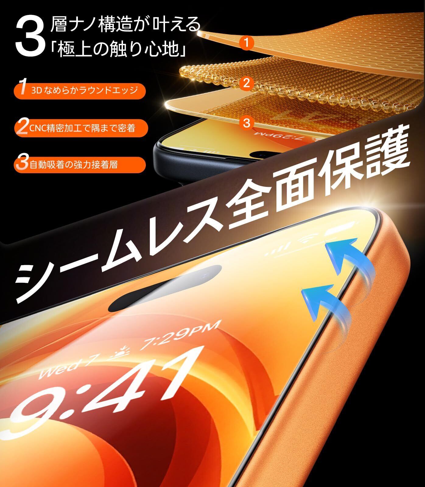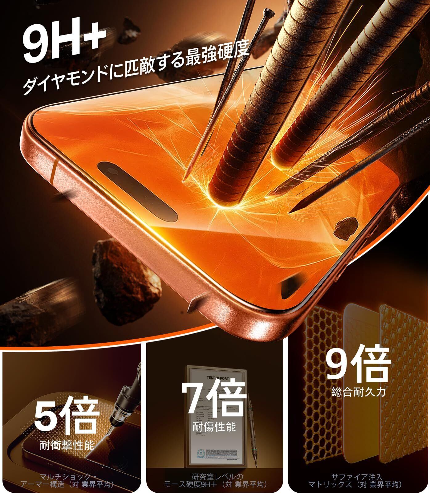 【米軍規格を凌駕する・3層防御システム】 米軍規格「MIL-STD-810G」認証(認証番号:GZMR220300626209)を取得した超強化構造。ナトリウム/カリウムイオン交換技術と二段階熱処理プロセスにより、250N以上の衝撃吸収能力を実現。2mの高さからの落下試験でも画面破損ゼロの実績を保持していた。3層防御システムで究極のセキュア:1、分子強化層:イオン交換でガラス密度を増加;2、SCL緩衝層:衝撃エネルギーを全方向に分散;3、曲面接着層:エッジ部の微細空隙を完全封止 。角落下時のフチ割れ発生を徹底的に防ぐ(CSTC Standards Testing Center |Mar 28, 2024検証)