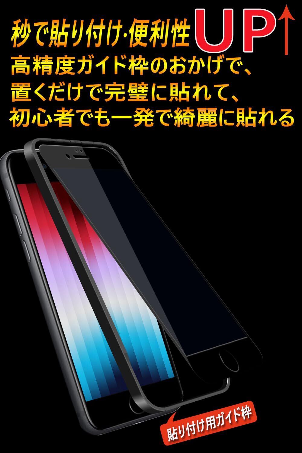 【特価セール】用のiPhone se3/se2/7/8 ガラスフィルム覗き見防止【秒で貼り付け/ガイド枠付き/指紋防止 ケースに干渉しない】日本旭硝子素材製 硬度10H 耐衝撃 強化保護フィルムのぞき見防止 -4.7インチ(ブラック)