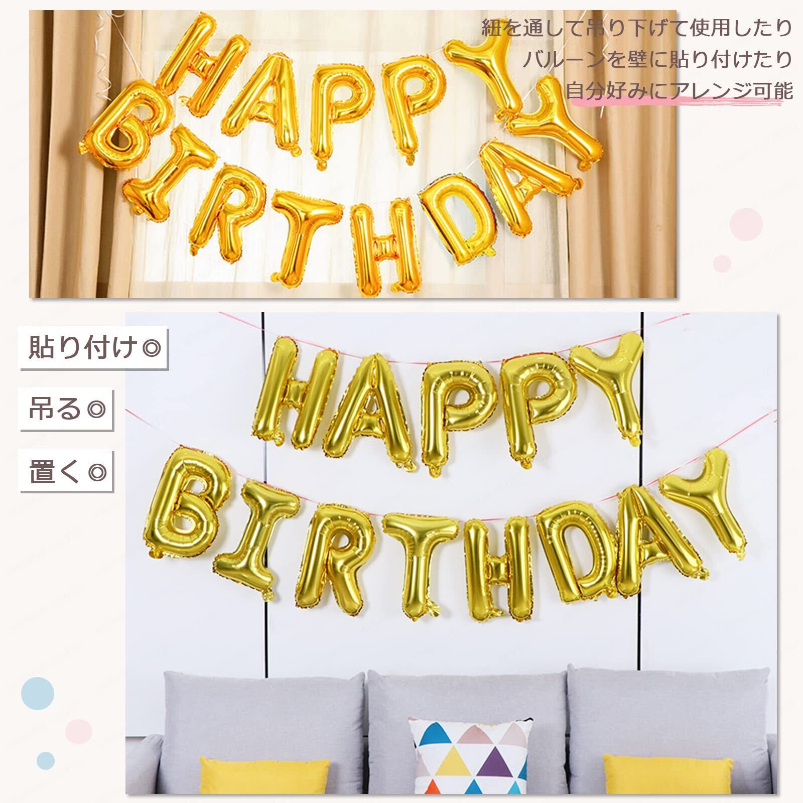Lausatek 誕生日 飾り バルーン アルミ風船 HAPPY BIRTHDAY ハッピー バースデー 文字 飾り付け リボン付き ゴールド