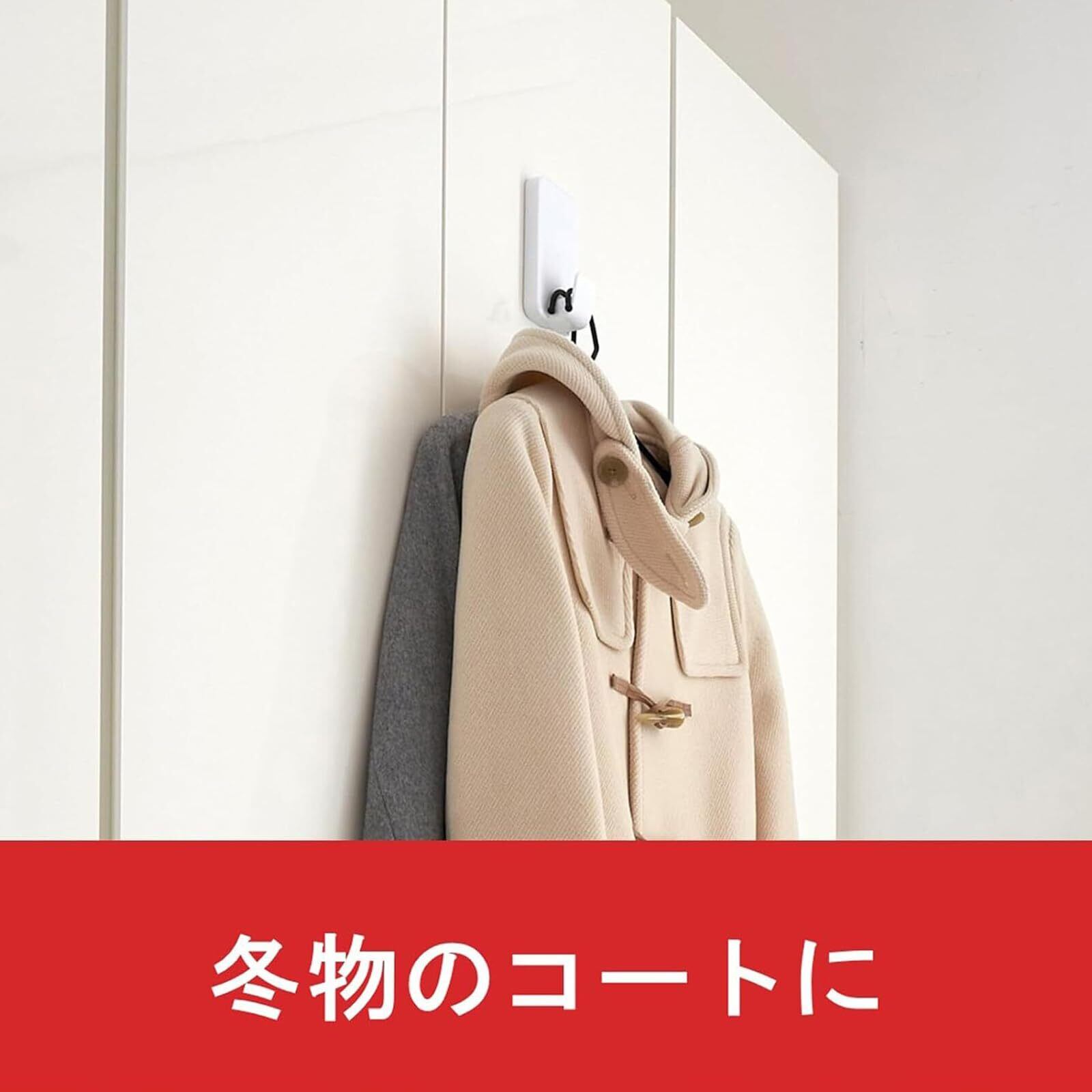 【ツルツル面にしっかり固定】ガラスやタイルなど、屋内の様々な平滑面にしっかりと設置できる強力なコマンド フック。大きなバッグ、厚手のコートやジャケットなどもしっかりと支え、備品などの収納に便利。