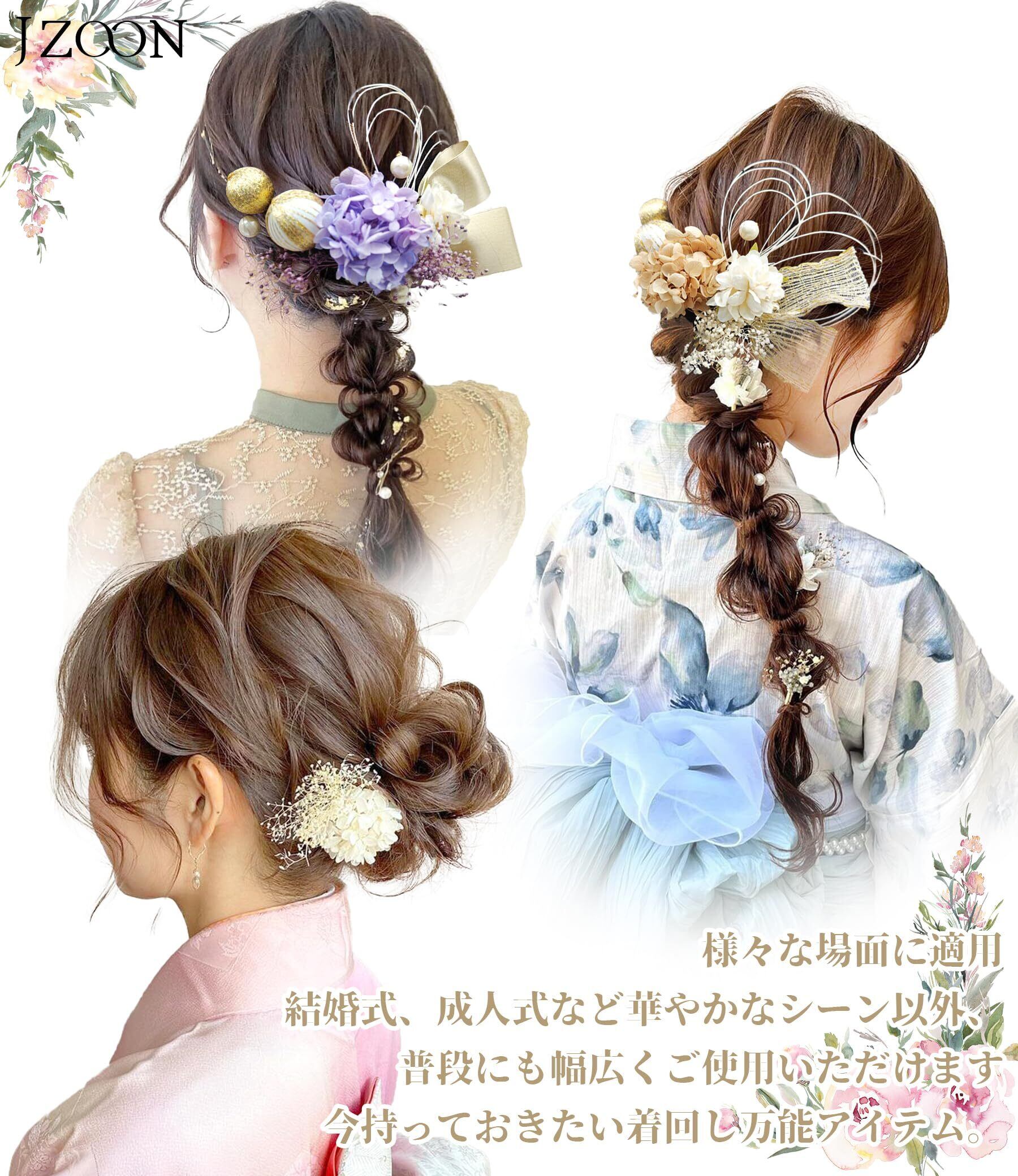 【新春セール】[JZOON] 髪飾り 9色展開 成人式 髪飾り ドライフラワー 袴 卒業式 和装 結婚式 振袖 プリザーブドフラワー 金箔 紐アレンジ 水引 和玉 A1600
