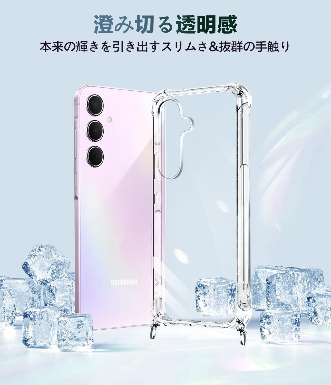 Galaxy A55 5G ケース クリア ショルダー galaxy a55 5g スマホケース ギャラクシーA55 カバー 肩掛け 斜めかけ 縄掛けケース 透明 TPU 耐衝撃 薄型 軽量 ケース 紐付き 斜めがけ 織りストラップ付き ネックストラップ ショルダー 長さ調整可能 取り外し可能 落下防止 紛失防止 (クリア)