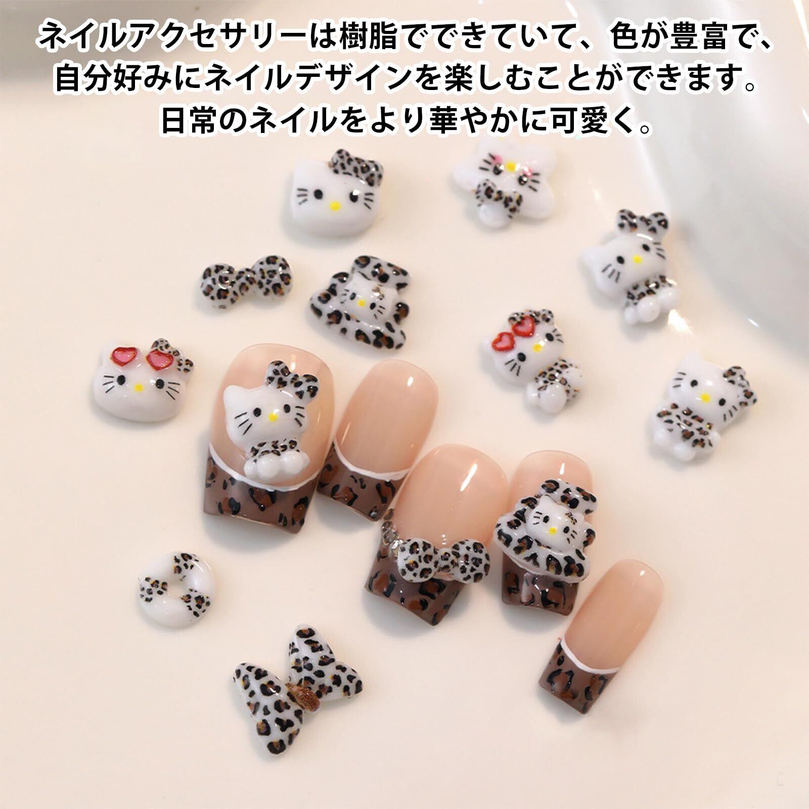 【可愛いネイルパーツ】カラフルなリボンとキティネイルパーツを揃っています。見た目が可愛くてお洒落です。ネイルのワンポイントにぴったり! 【素材】ネイルパーツは樹脂素材で作られて、軽量で、使いやすく、耐久性があります。立体感があり存在感が抜群です。季節を問わず幅広くお使いいただけます。 【ネイルアートに】ネイルにのせるだけで、可愛い印象のネイルアートができます。セルフネイルまたはネイルサロン使用に適しています。 【幅広い用途】ネイルのアクセントだけではなく、スマホカバーの飾り、ジュエリー、ハンドメイド作品の手作りにもご利用いただけます。想像力を十分に発揮し、美しい装飾を創造することができます。 【パッケージ】ネイルパーツ1ケース入り。