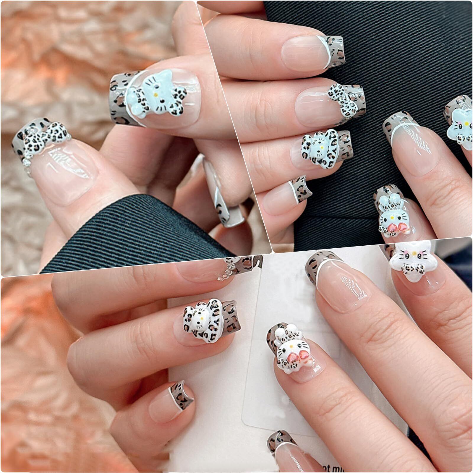 【数量限定】ネイルパーツ キティ リボン 1ケース入り 可愛い 大きい キティ ネイルパーツ ストーン 3D 立体 リボン デコパーツ 猫 蝶結び ネイルアート ジュエリーパーツ 手芸 ハンドメイド レジン パーツ (ヒョウ柄 黒)