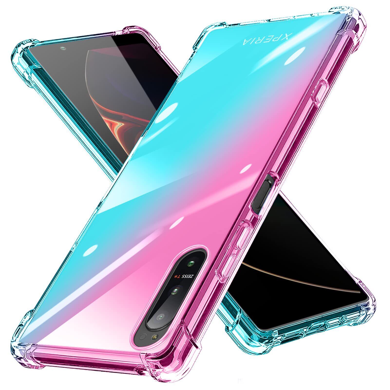 対応 Xperia 5 IV 用の ケース クリア 耐衝撃 SO-54C | SOG09 | A204SO 透明 カバー TPU 薄型 軽量 滑り止め 黄変防止 柔軟 Qi充電 衝撃吸収 指紋防止 米軍MIL規格取得 ワイヤレス充電に対応 カメラ保護 カバー ピンク+緑 N415-xp 5iv-04