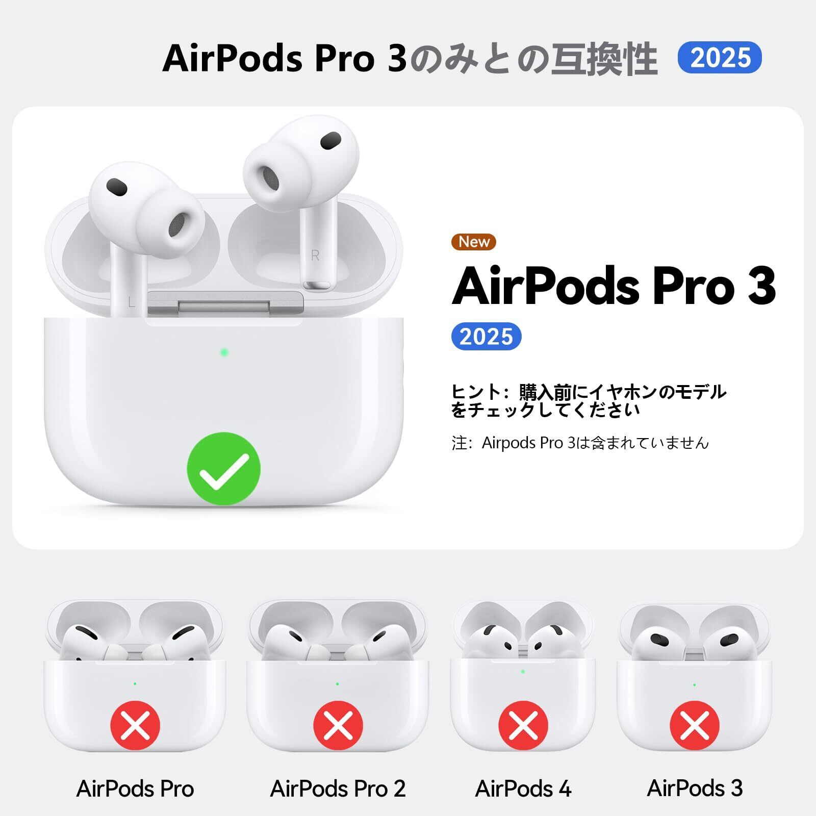 【正確にマッチ】Apple AirPods Pro3 充電 ケース(2025)とのみ互換性, AirPods Pro第2世代/第1世代(2023/2022/2019)と互換性はありません, 注意:AirPod Pro 3は含まれていません