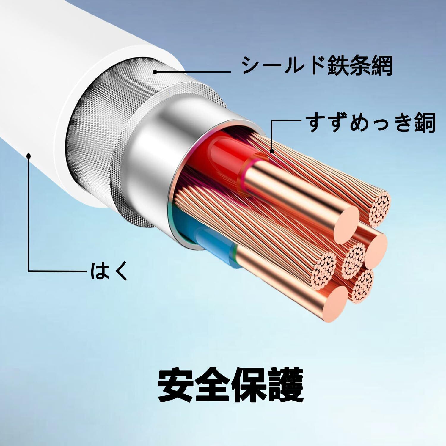 【強靭なTPE素材】iPhoneケーブルの外側には耐摩耗性に強くて、絡まりにく、優れたのTPE素材を採用し、内部には優れる銅線、一般的な充電ケーブルより長持ちできた上に、10000回の曲折テストに合格し、ケーブル内部のワイヤーを断線から保護できます。高耐久性たTYPE-C ケーブル頻繁な挿抜や長時間の使用にも耐えられ、スマホ本体と安定して接続できます。