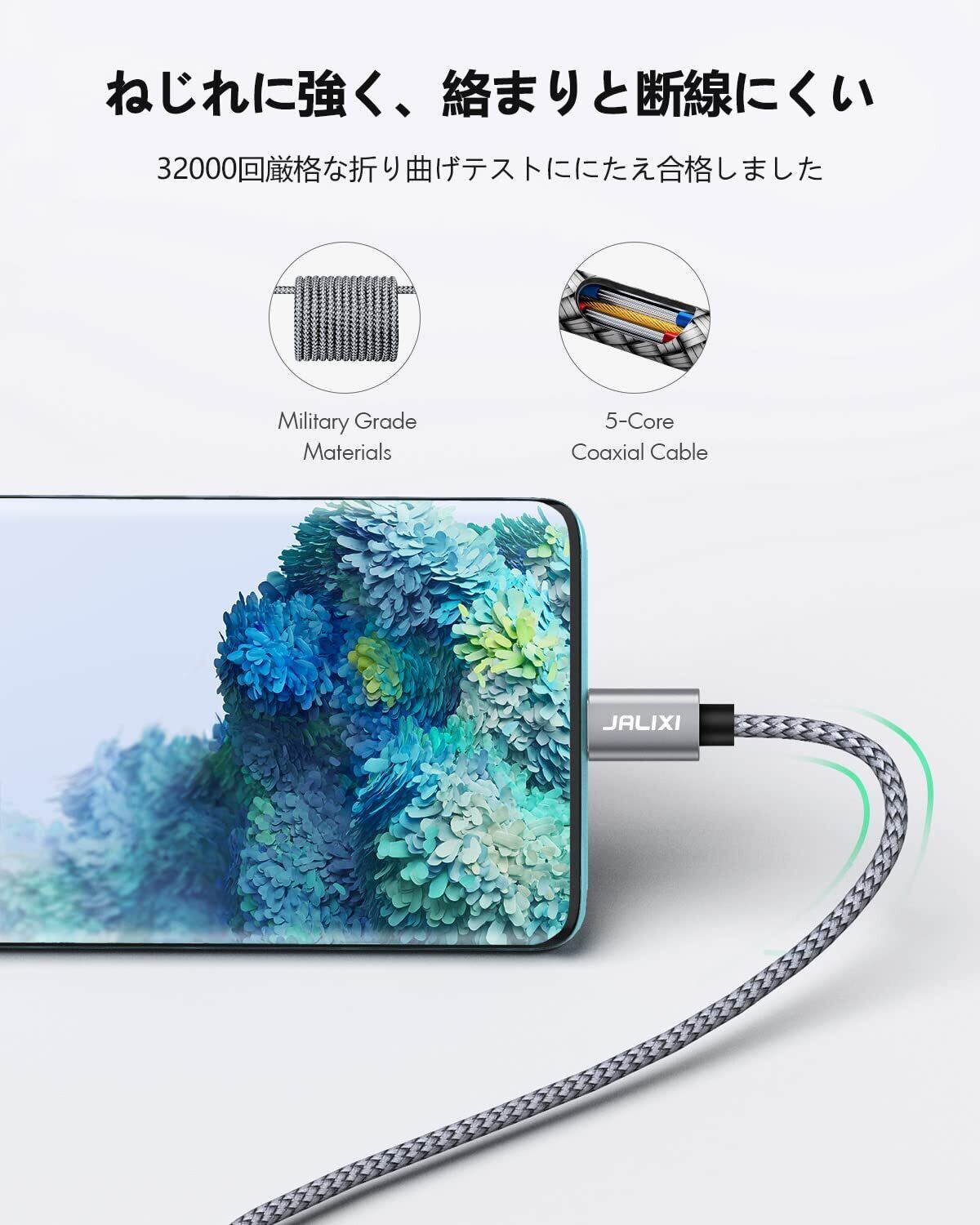 【高い耐久性】外装に高耐久のナイロンと抜群なアルミニウム合金を採用されるのpdケーブルで、32000回以上厳密な曲げ試験に合格し、絡まりを防ぎ、曲げが強くて使いやすい。それに、USBポートは繰り返した抜き差しの試験に合格し、スタイリッシュだけでなくて長く使えます。