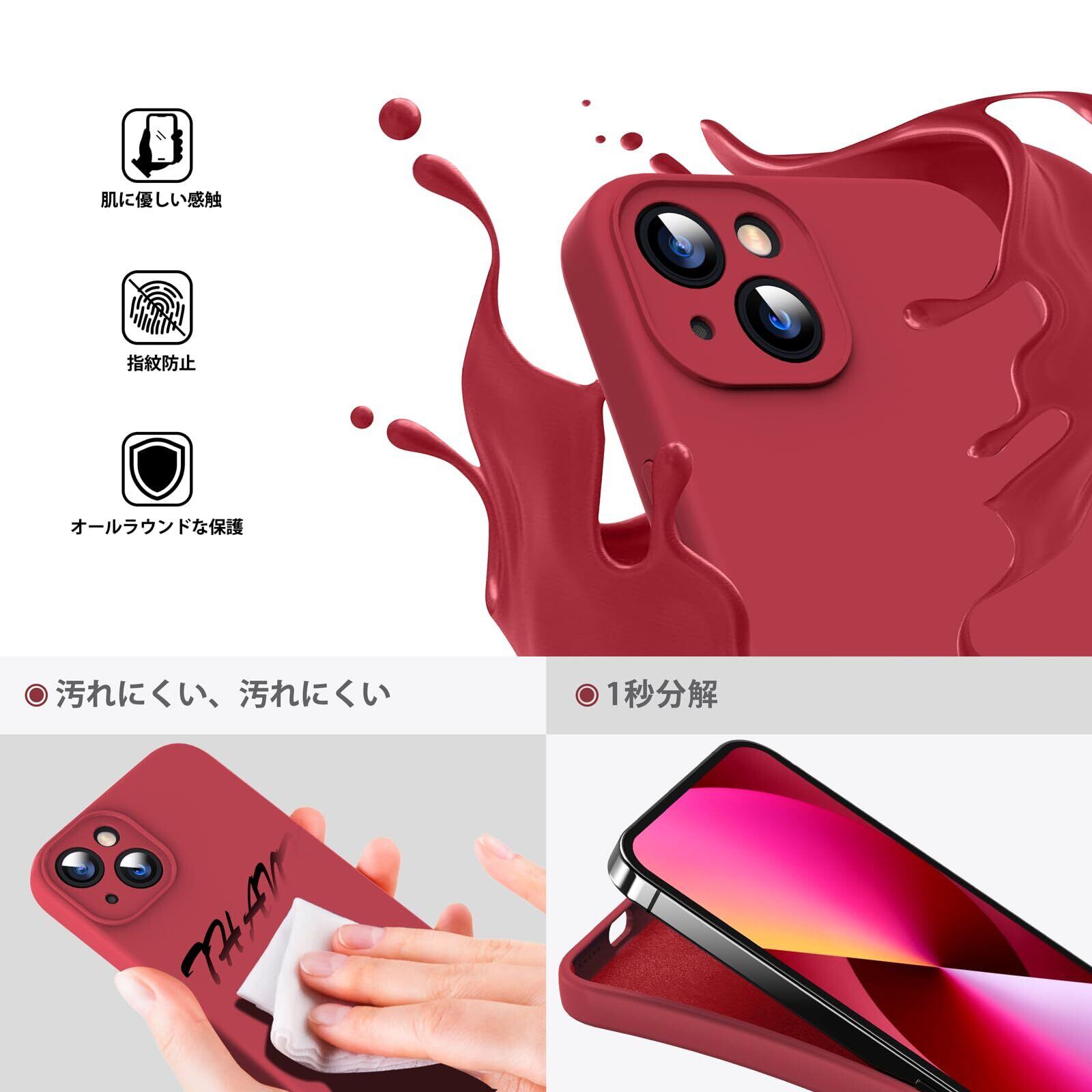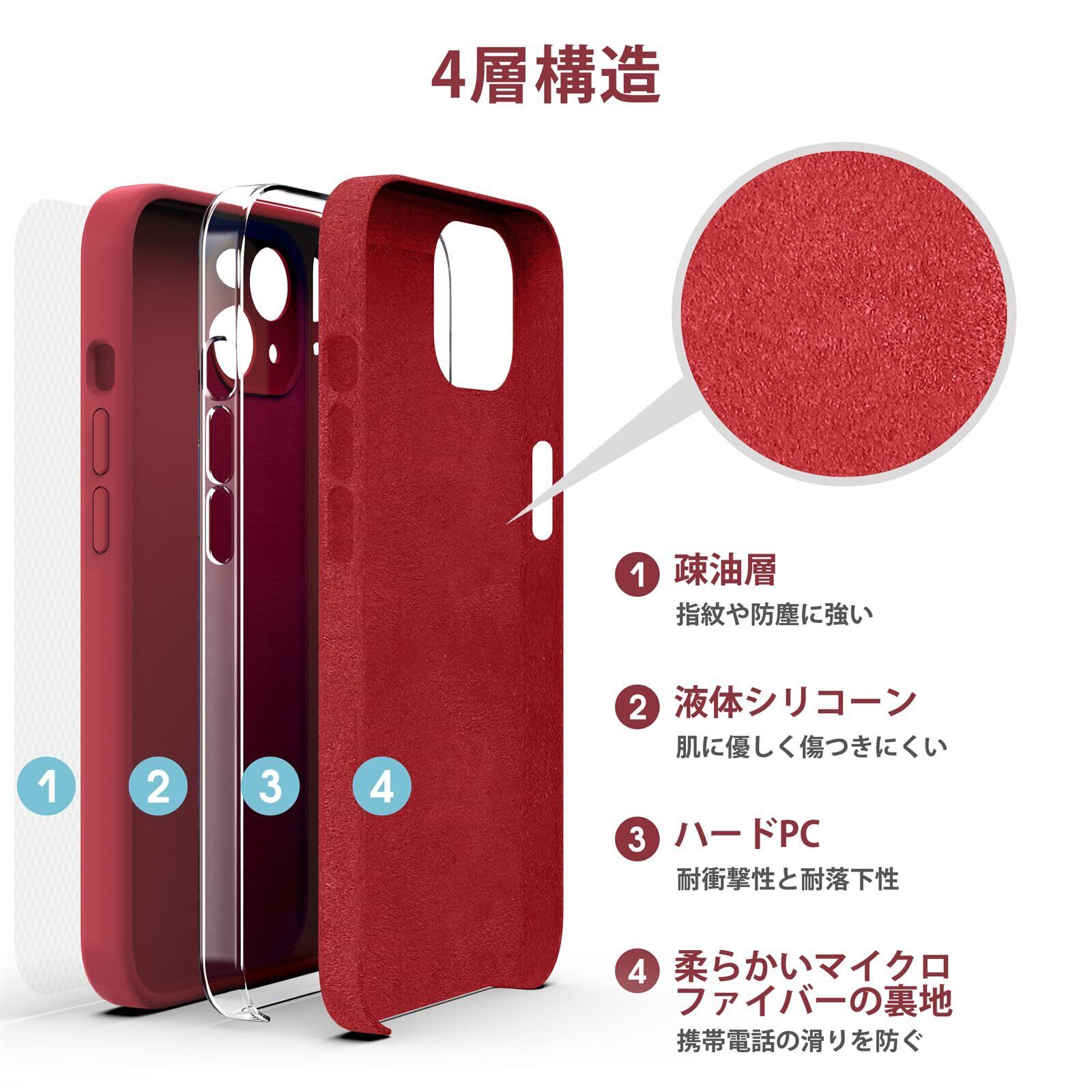 【耐衝撃・耐落下・傷防止】iPhone 13 液状シリコンケース、4層プロセス【液状シリコンケース】【硬質PCボード】【マイクロファイバーパッド】【撥油層】で携帯電話を摩耗や損傷から守ります。