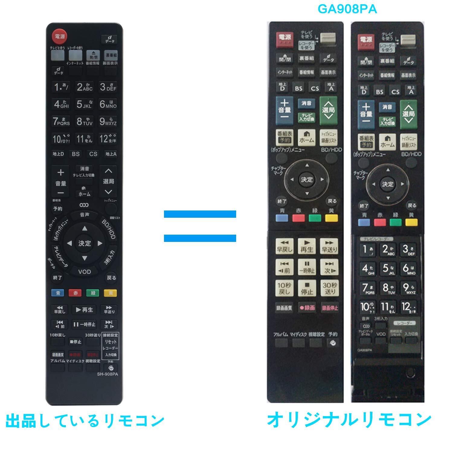 ブルーレイディスクレコーダー用リモコン fit for シャープ GA908PA BD-HDS63 BD- HDS65 BD-HDW63 BD-HDW65