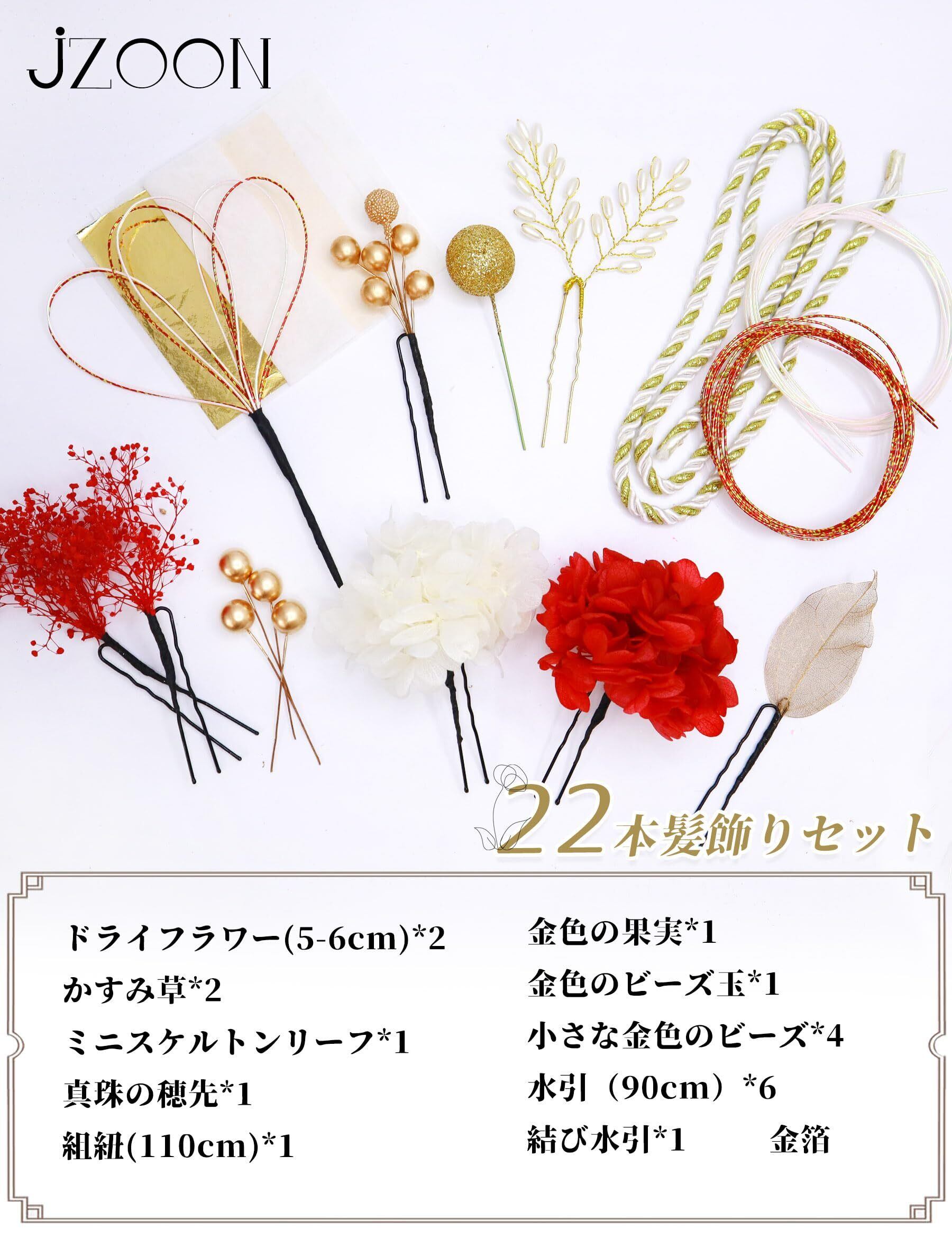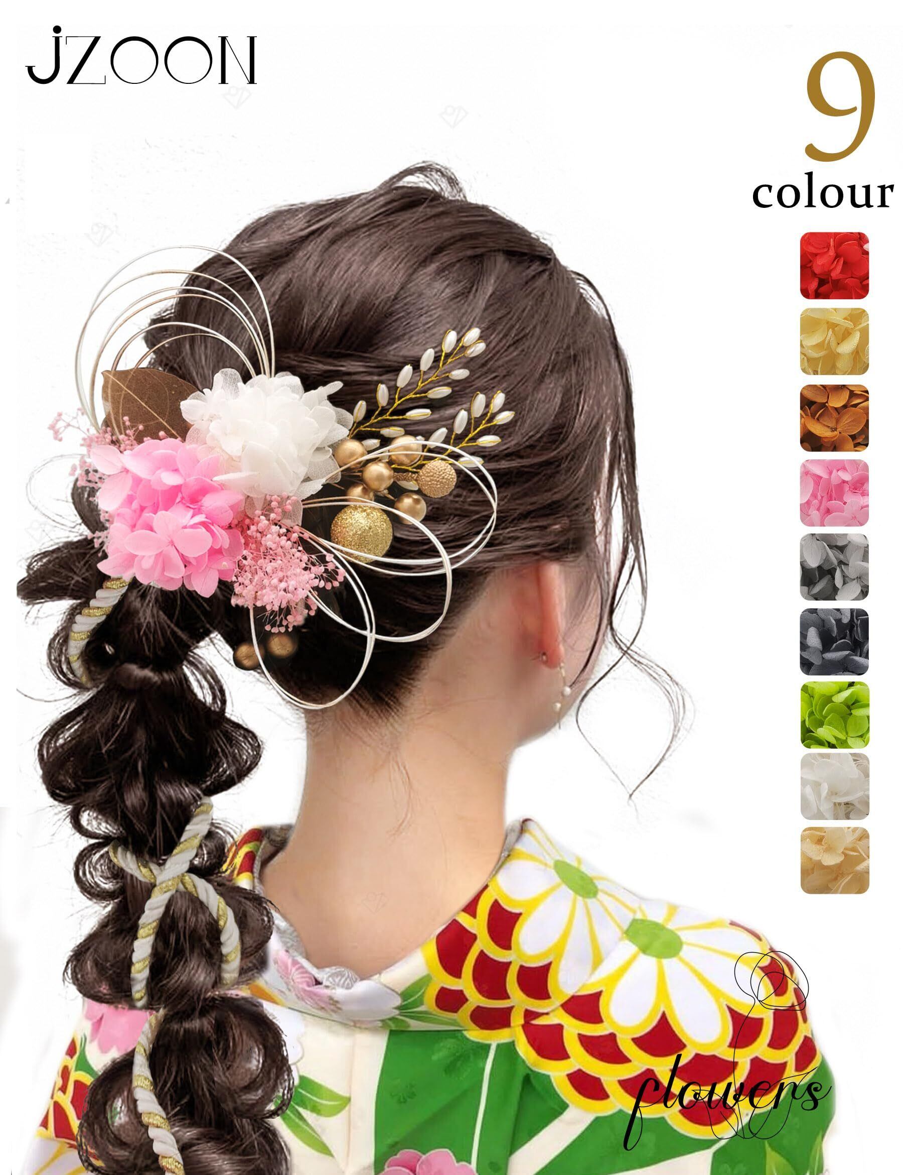 [JZOON] 9色展開 髪飾り 成人式 袴 卒業式 和装 結婚式 振袖 ドライフラワー プリザーブドフラワー かすみ草 金箔 紐アレンジ 水引 赤 A6001