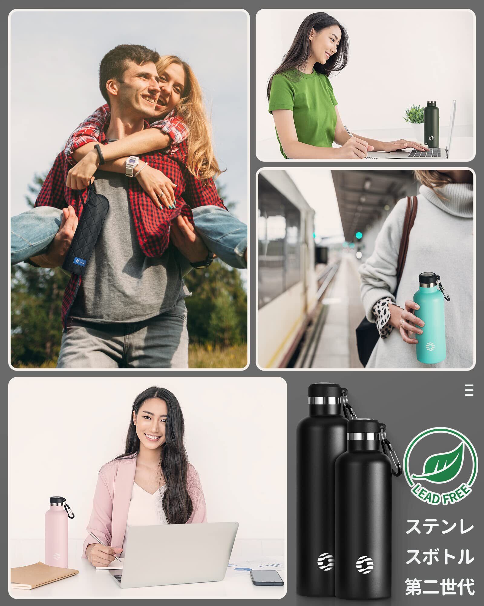 【広口・大容量】口径:4.5cm、容量:500ml/600ml/750ml/1000ml。アウトドアにはもちろん、室内での水分補給もしっかりとれます。持ち運びに便利なカラビナ付きなのでオフィス・学校用の水筒や部活、スポーツ、外での営業仕事や移動が多い方にもおすすめです。