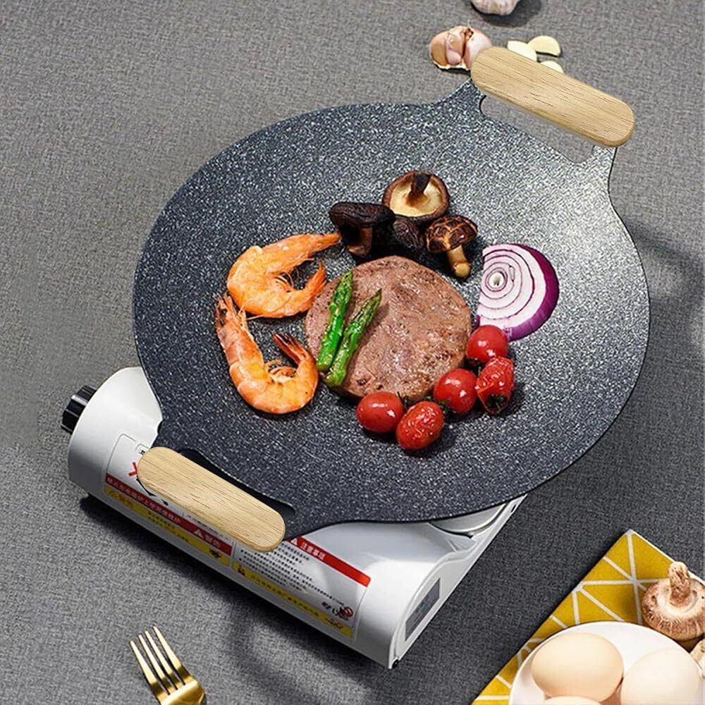 【幅広い用途】ソリッドウッドハンドルグリルパンは、快適で安全なグリル体験を提供し、様々なシーンで活躍する高品質なオプションです。旅行/キャンプ/ピクニックなど、ご家庭や屋外での移動使用に大変便利です。