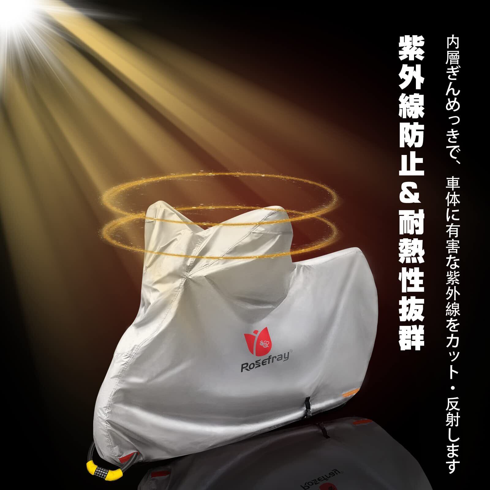 【在庫処分】Rosefray バイクカバー 210D M-L 209cmまで対応 スマートサイズ 高機能 撥水 UVカット 小型 原付 車体カバー 風飛び防止 鍵穴付 収納袋付き | allstore2