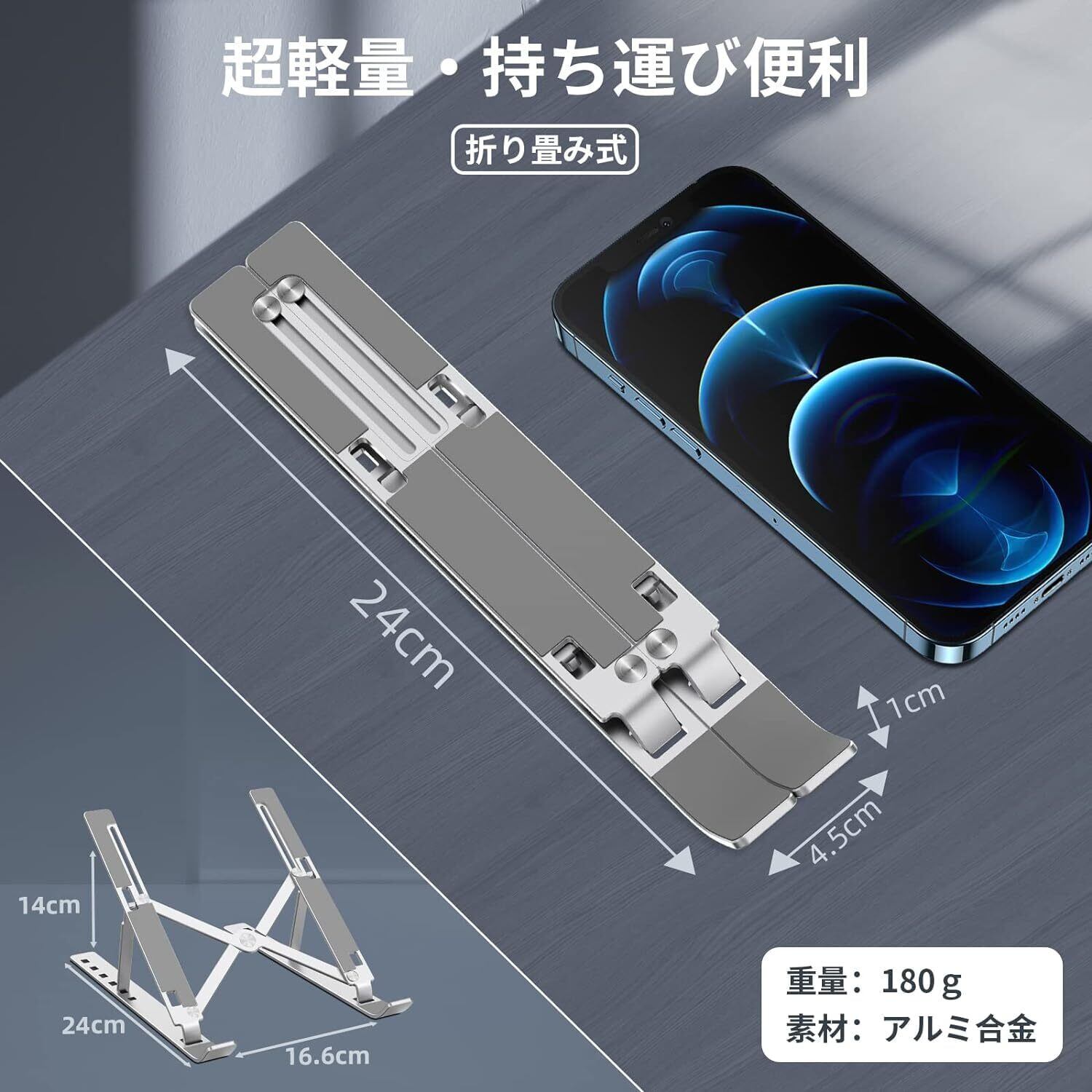 【在庫処分】ノート パソコン スタンド Pewesv ノート PC スタンド アルミ合金製 タブレットスタンド 折り畳み式 姿勢改善 教卓 スタンド 超軽量 安定 放熱 滑り止め 角度調整 収納可能 在宅/出勤勤務 持ち運びに便利 10.5-17インチまで対応