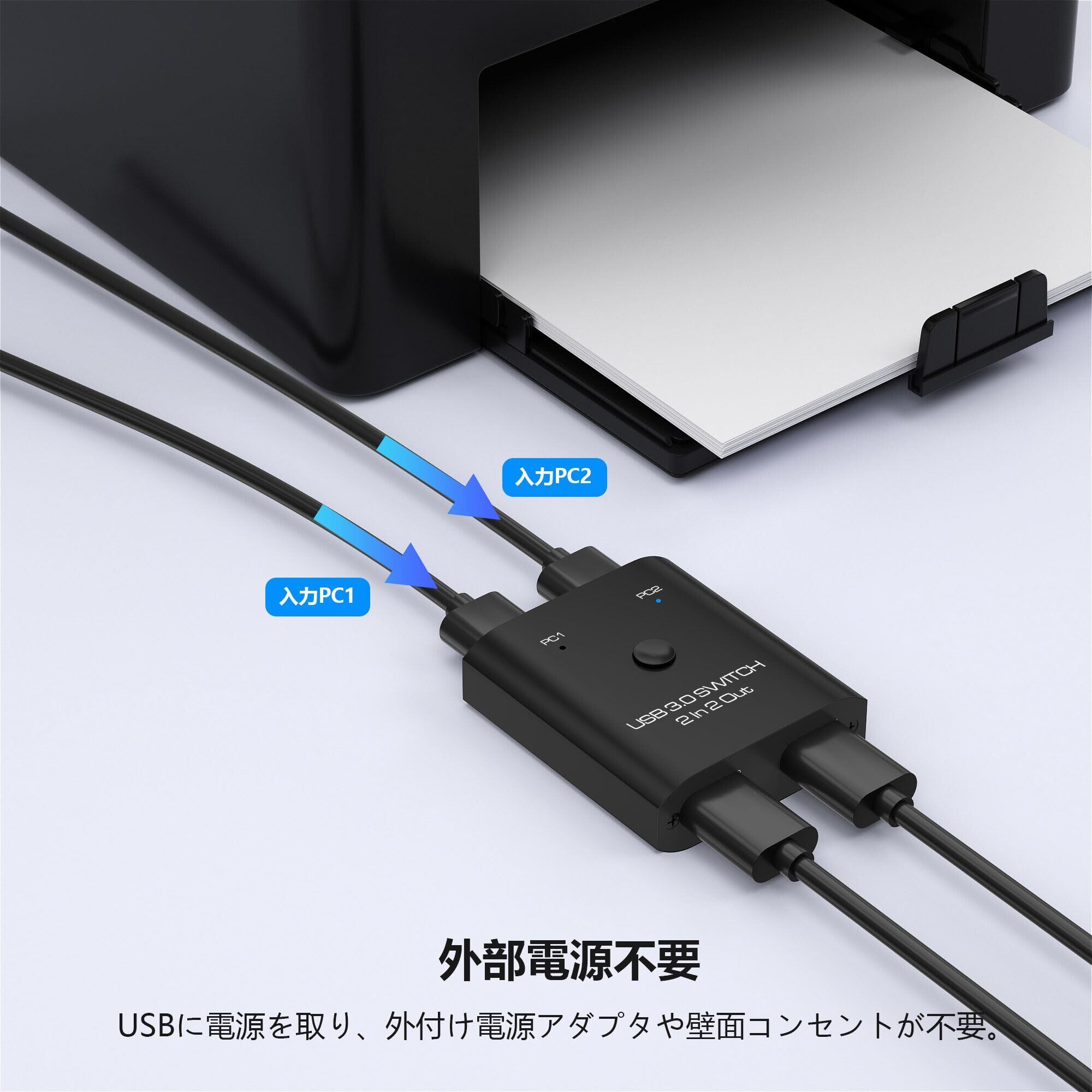 USB 切替器 2入力2出力 USB3.0切り替え器 2台PCでキーボード/マウス/プリンタ/スキャナ/Webカメラなどを共有 USB切り替え機 マウス キーボード 切り替え 1台のプリンターを2台のパソコンで使用 Type-A セレクター パソコン 2台 Type-A スイッチャー 2本のUSB3.0ケーブル付き