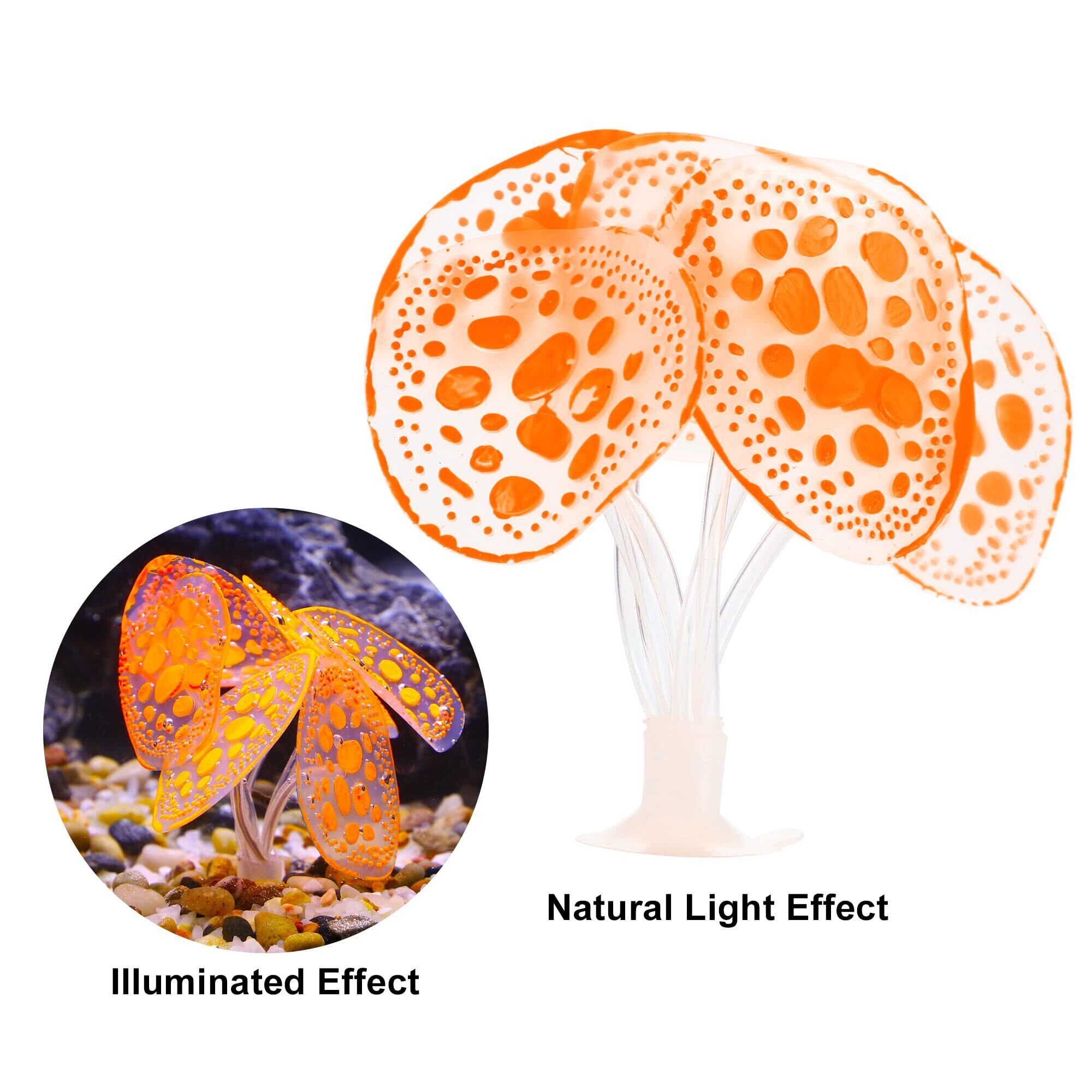 VOCOSTE 水族館シミュレーションサンゴ ソフトシリコン グローイング 吸盤付き 蛍光 人工水生植物 水槽の装飾用 オレンジ