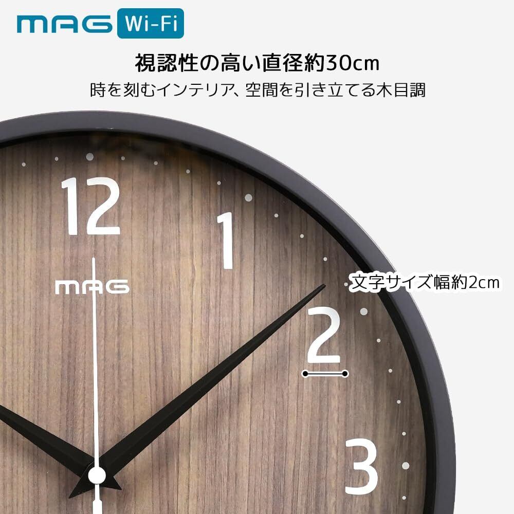 【数量限定】MAG(マグ) 掛け時計 壁掛け時計 Wi-Fiと接続 無線LAN アナログ 連続秒針 静音 木目調 インテリア おしゃれ かわいい 見やすい リビング マンション 直径約29.2㎝ ダークグレー W818ADGYZ ノア精密