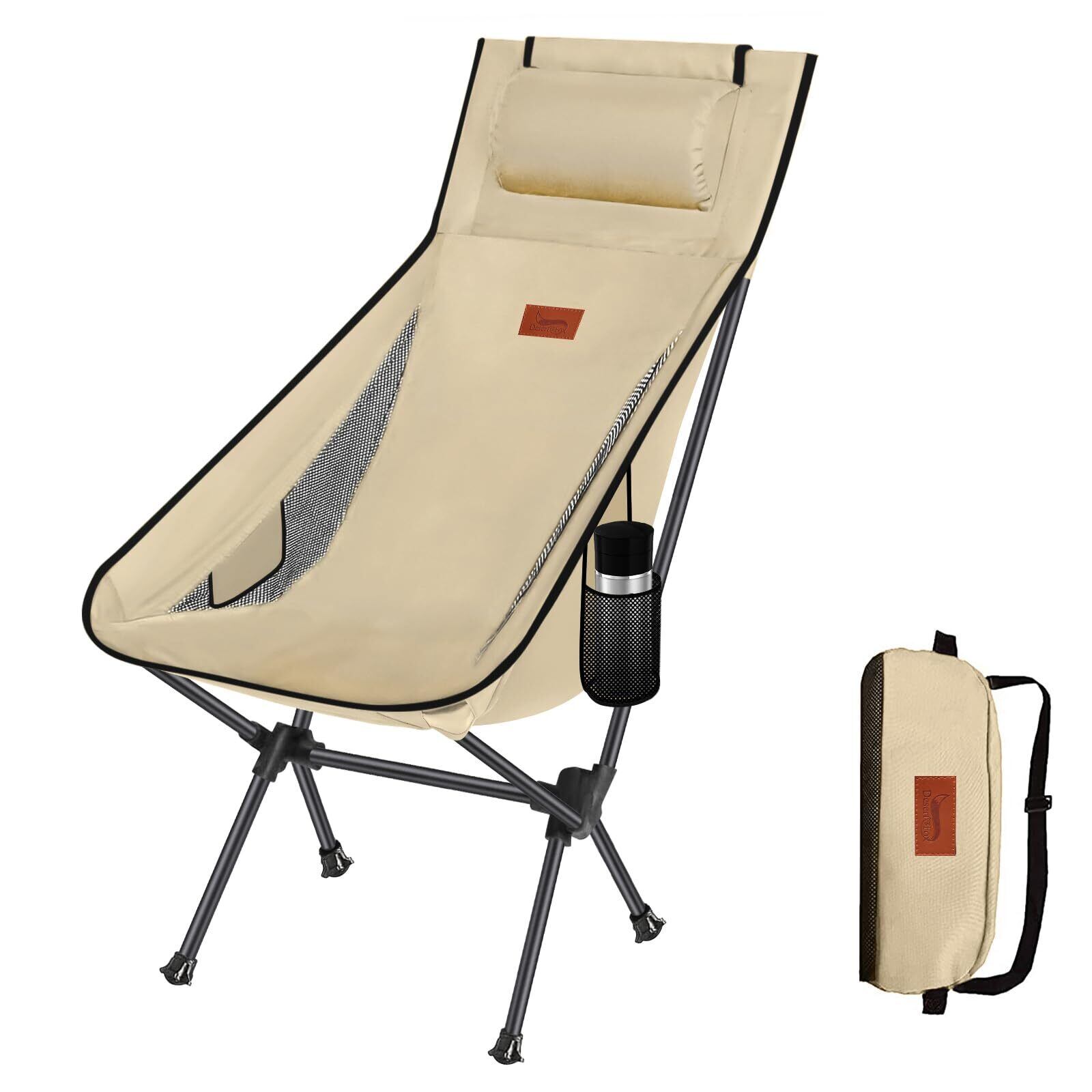 DesertFox キャンプ 椅子 アウトドアチェア 折りたたみ 枕付き 超軽量 【独自開発のカップホルダー】 【耐荷重150kg】 キャンプ チェア コンパクト イス ハイバック 椅子 いす 収納袋付属 お釣り 登山 携帯便利 0088