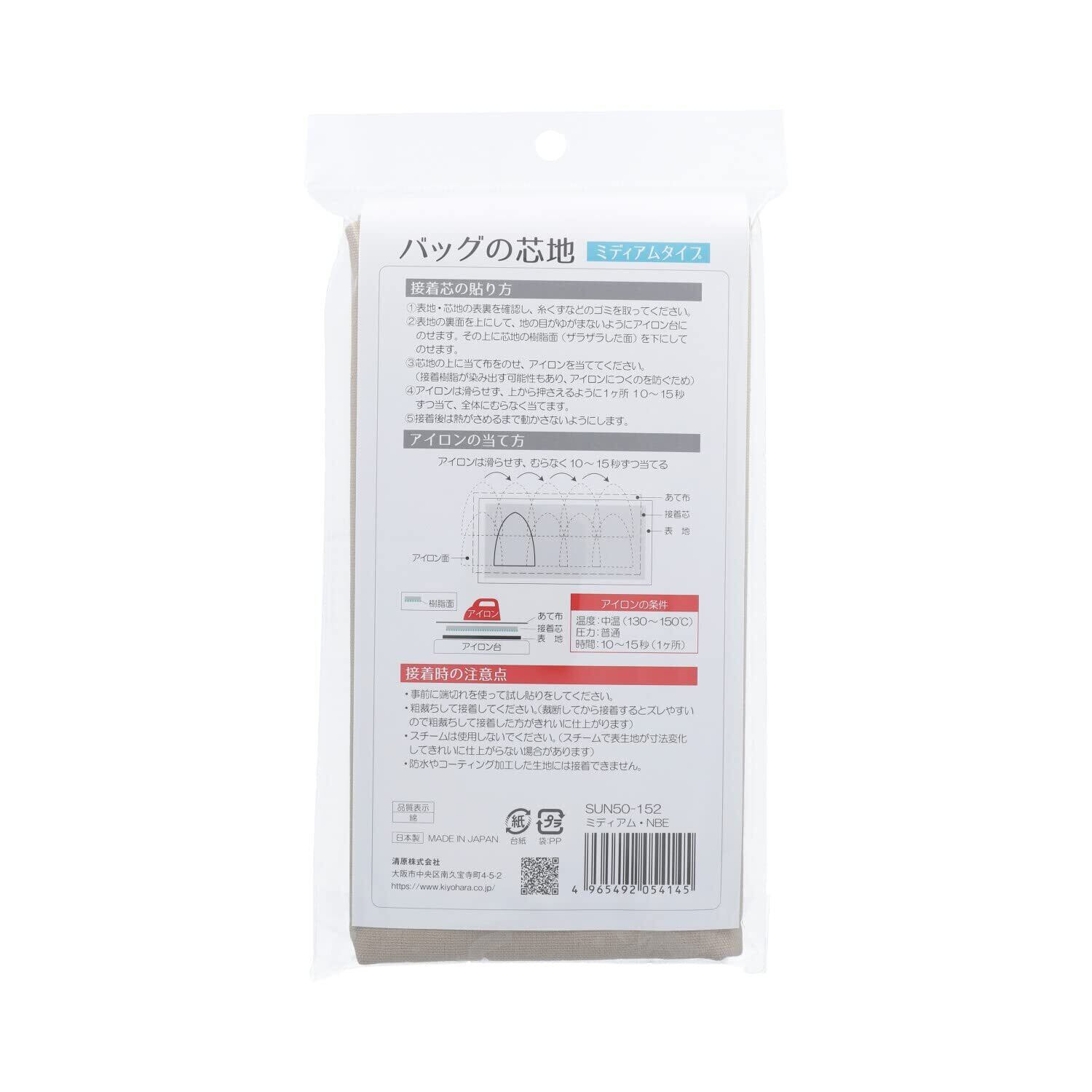 清原(KIYOHARA) サンコッコー バッグの芯地 ミディアム 巾110cm×長さ50cm NBE ナチュラルベージュ 通園通学バッグが作れるレシピ付き SUN50-152
