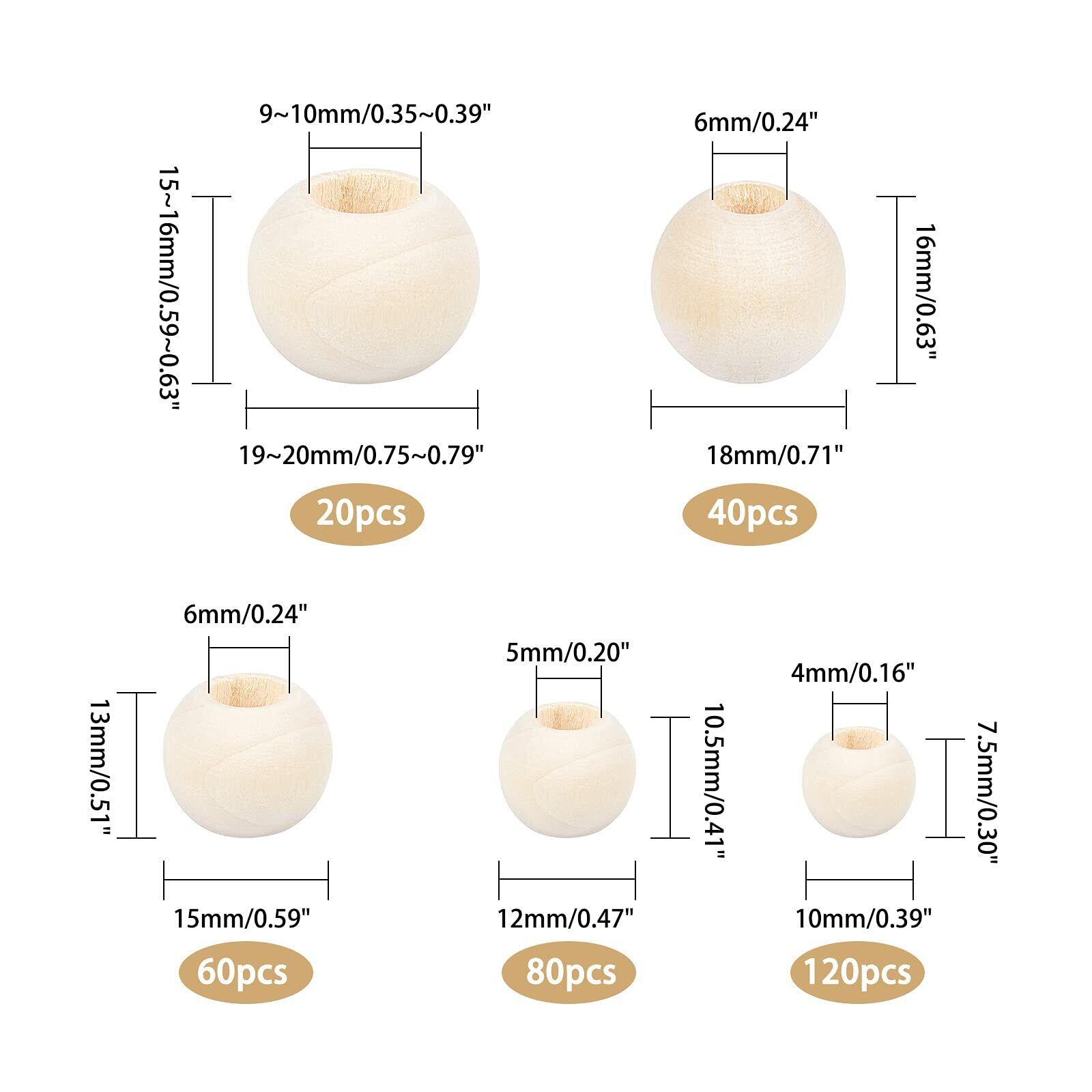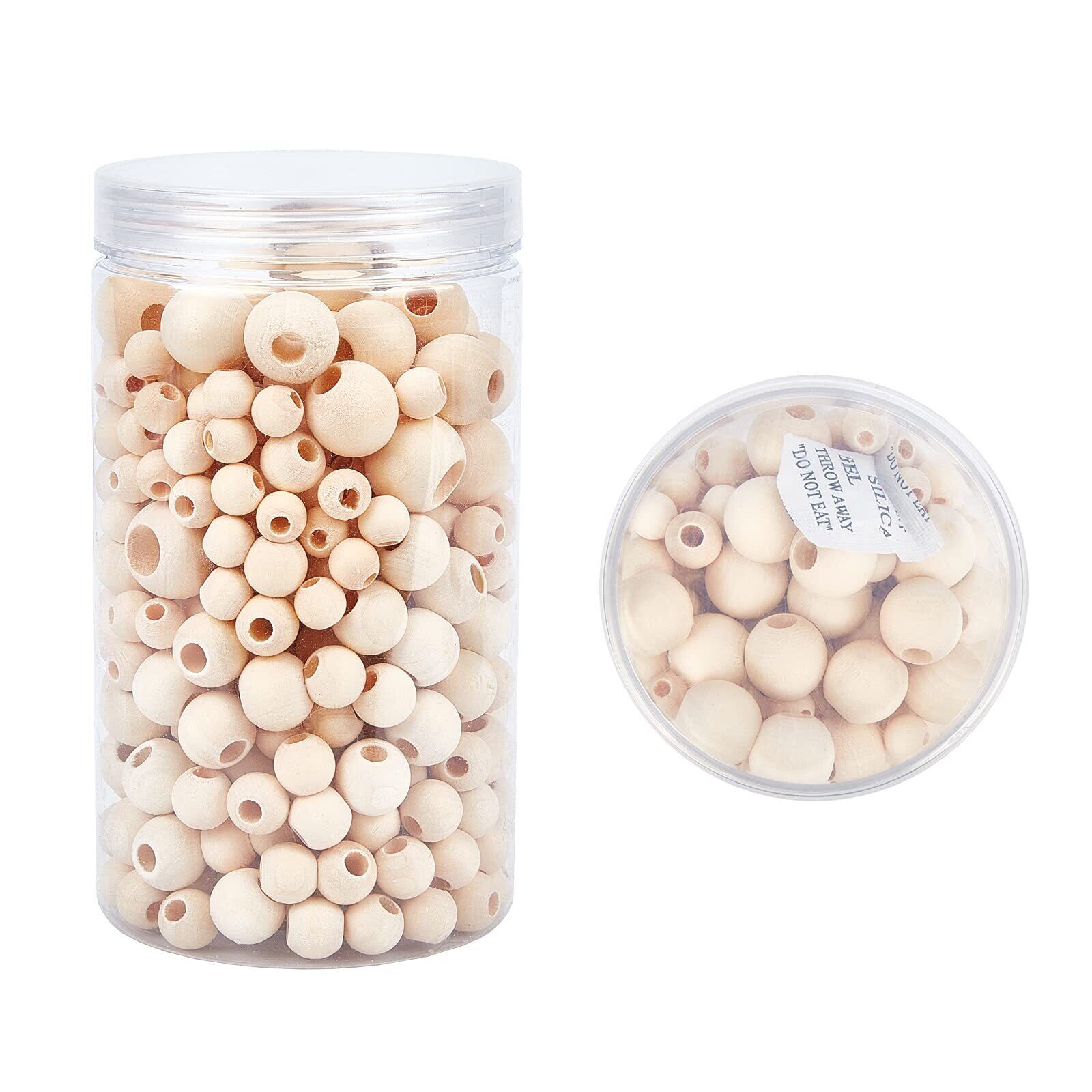 PH PandaHall ウッドビーズ 大穴木製ビーズ 320個 5サイズ ラウンド ナチュラルウッドビーズ ウッドクラフトビーズ ジュエリーブレスレットネックレス マクラメクラフト作り用